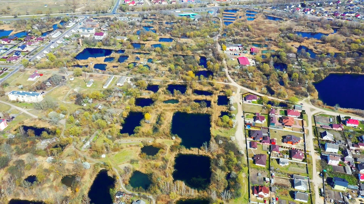 Брест, конечно, до этих рубежей дорос не так давно. Изначально окрестности входили в отдельный населенный пункт Гершоны, в межвоенные годы добавился закрытый военный городок, а уже после войны построен отдельный поселок кирпичного завода №22. В дореволюционное время глину в Гершонах добывали мелкие частные предприниматели, а также относительно крупный казенный завод, снабжавший стройматериалами в том числе стройку Брестской крепости. С высоты выработки выглядят так: