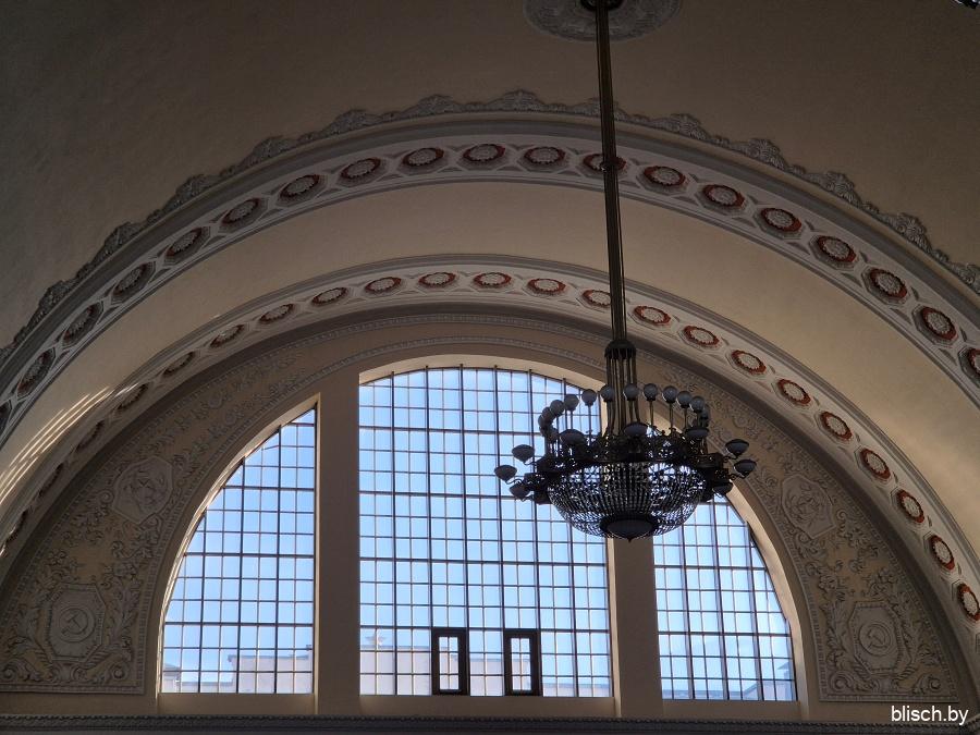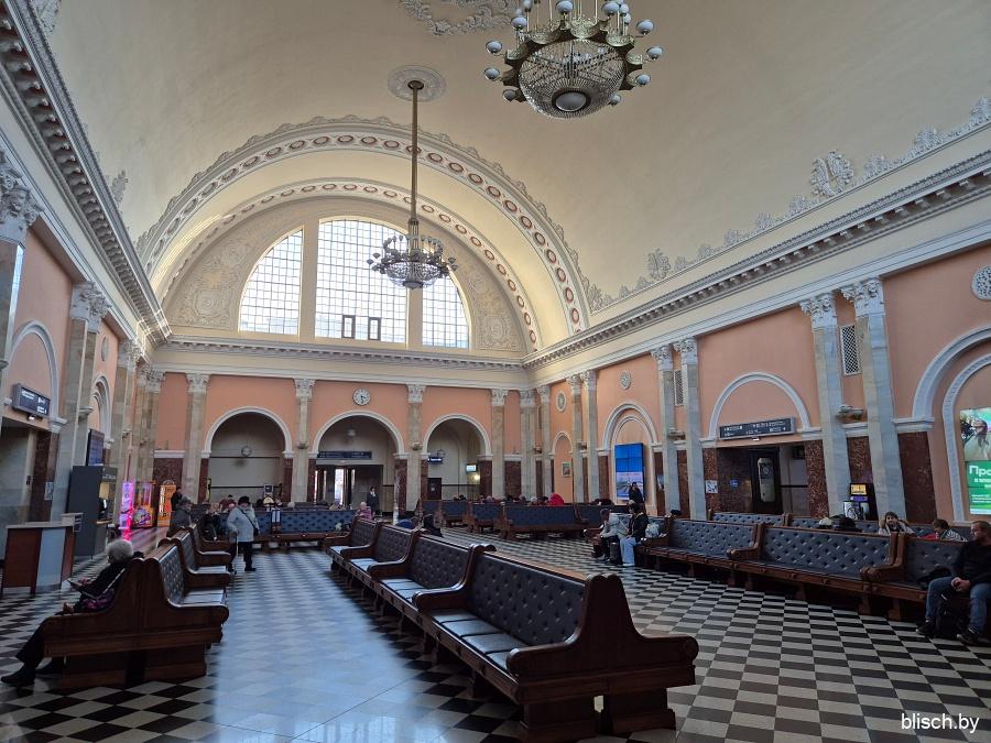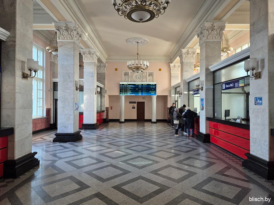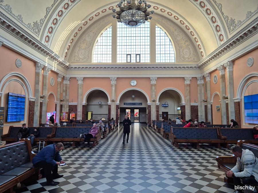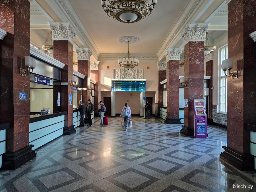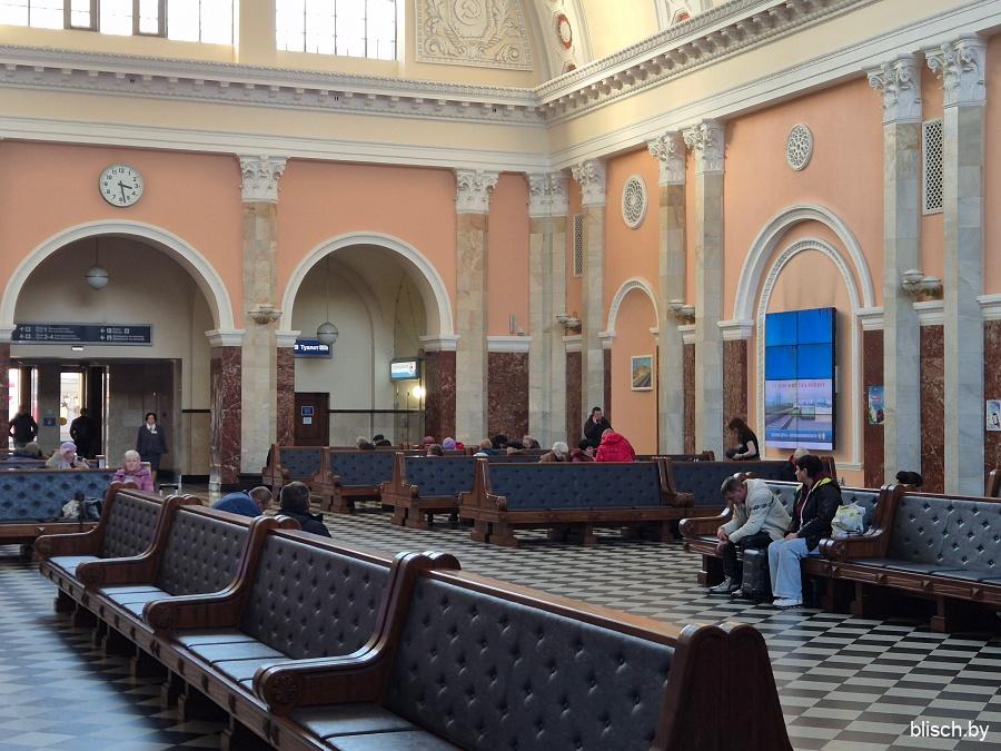 Наибольший интерес представляет, конечно, зал ожидания, который я подозреваю в польском происхождении (как минимум в части пропорций и стен). Это самое красивое, что есть среди пассажирских терминалов в Беларуси: