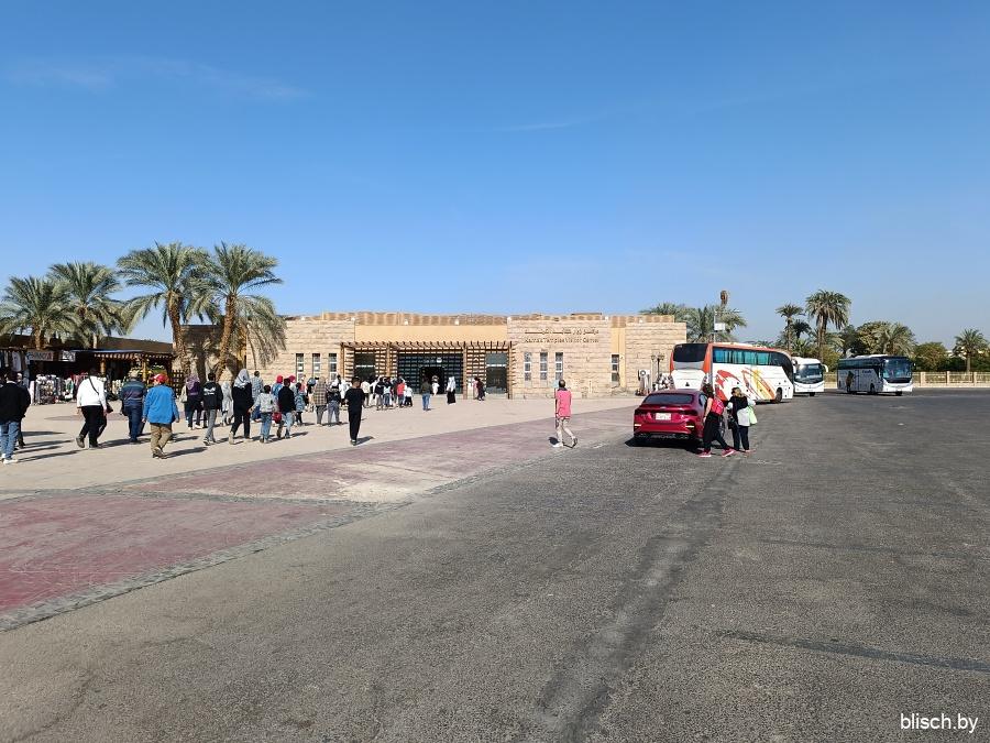 Конечно, в Луксоре не музеи главное, хотя вроде бы там есть неплохие, особенно если вы обладаете соответствующим историческим и культурологическим бэкграундом. Центральными объектами города считаются храмы и особенно Карнакский храм — крупнейший в мире, главнейший в плеяде культовых сооружений Древнего Египта. Парковочная площадка у входа и кассовый зал: