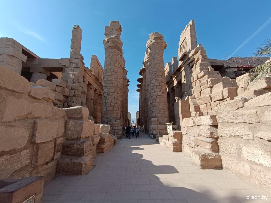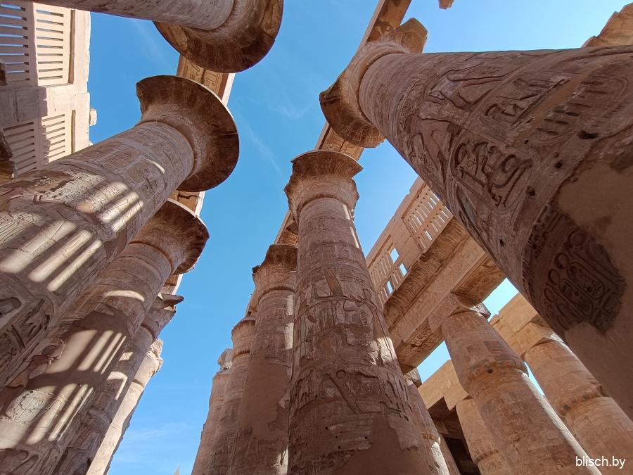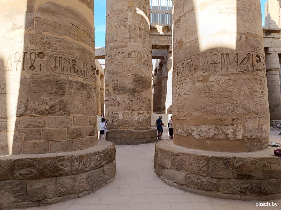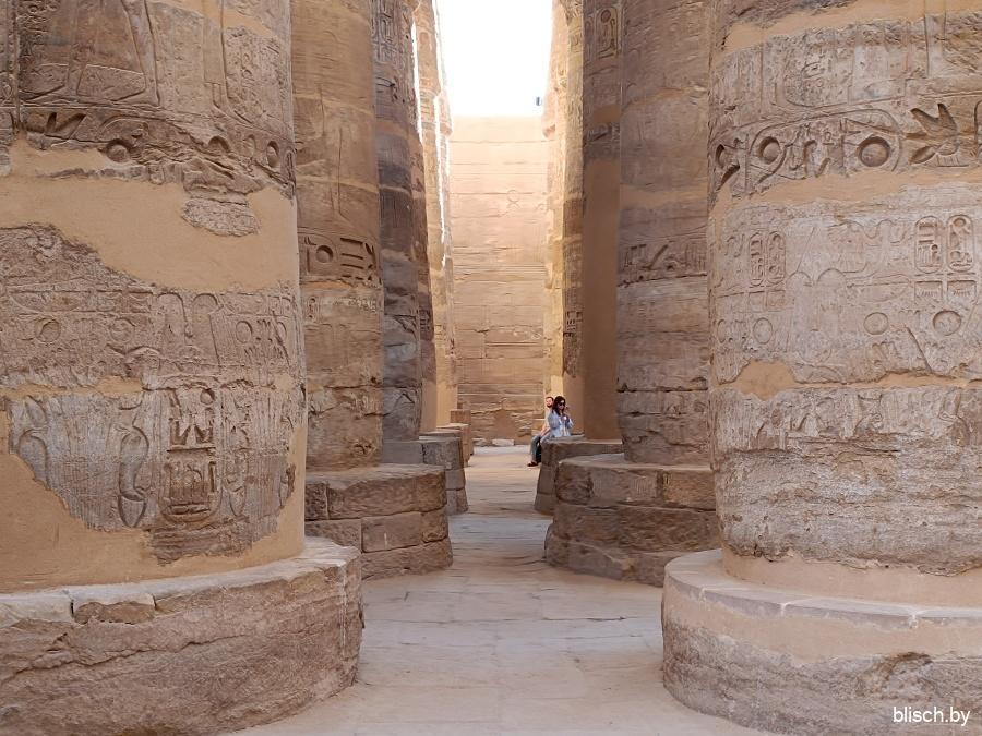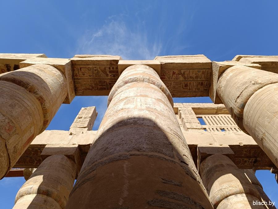 Следом идет наиболее впечатляющий гипостильный зал со 144 циклопическими колоннами и могучими перекрытиями. Все это строилось 3-4 тысячи лет назад без башенных кранов Liebherr и расчетов на ПЭВМ: