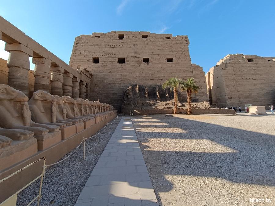 Многокилометровая аллея сфинксов, соединяющая оба комплекса: