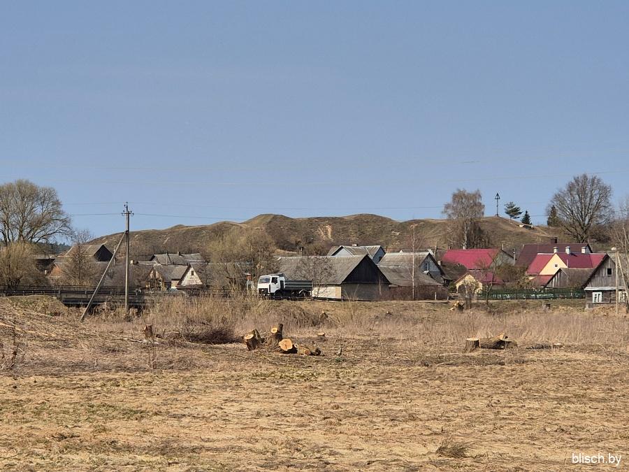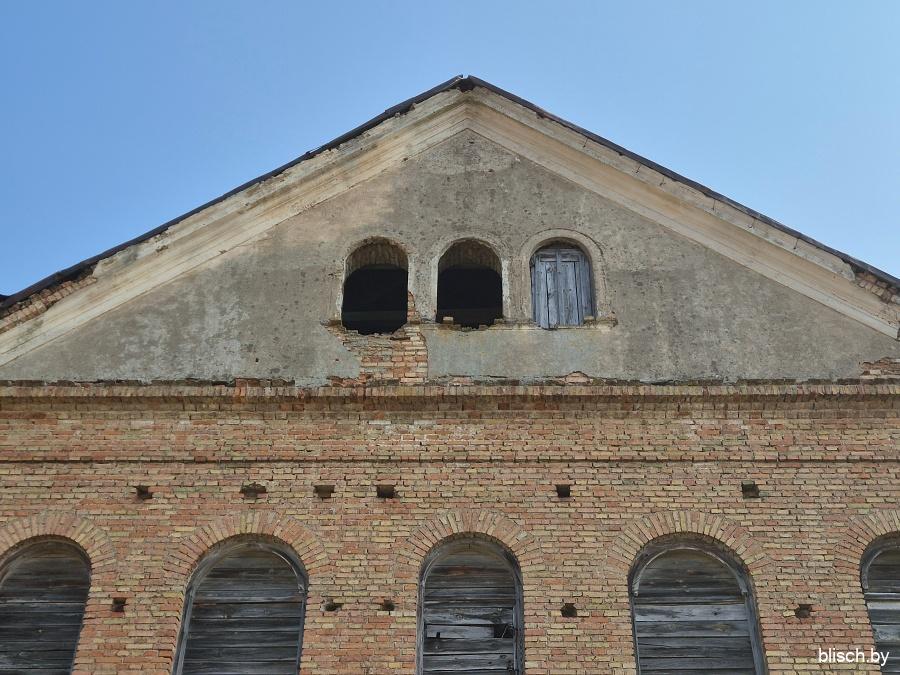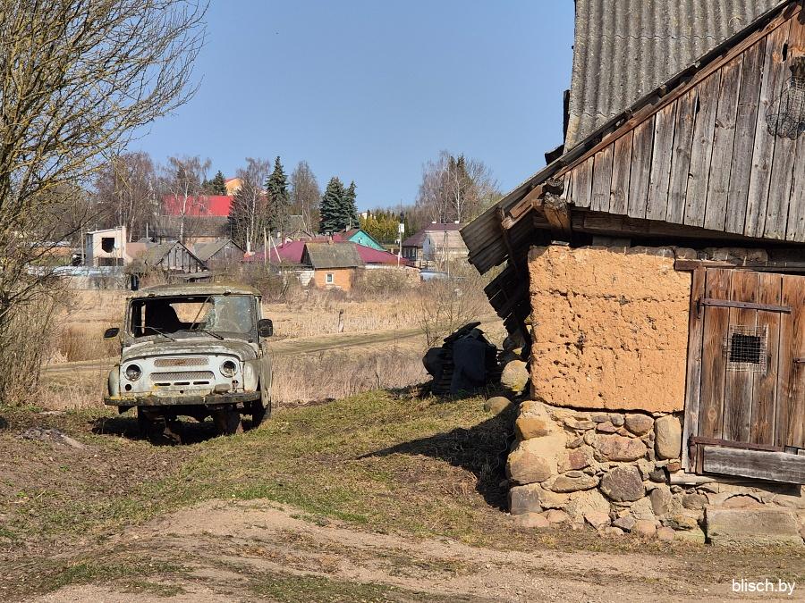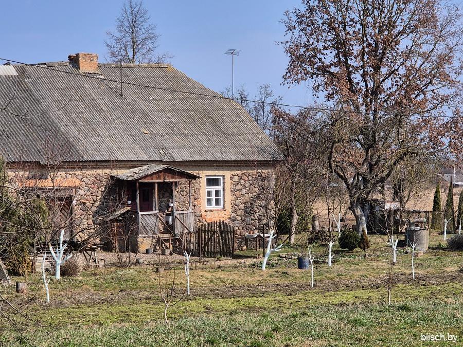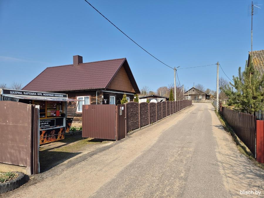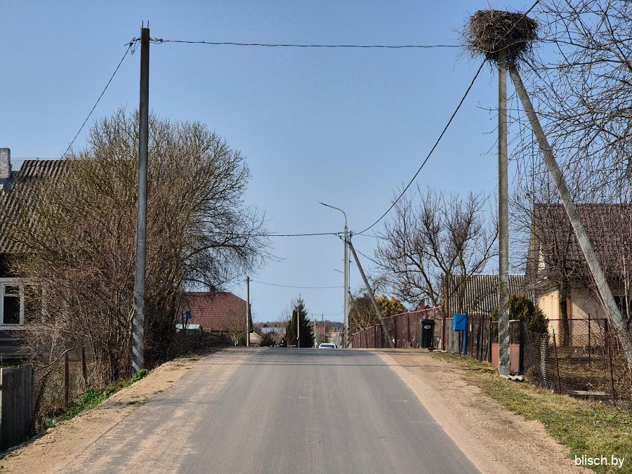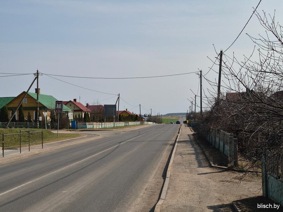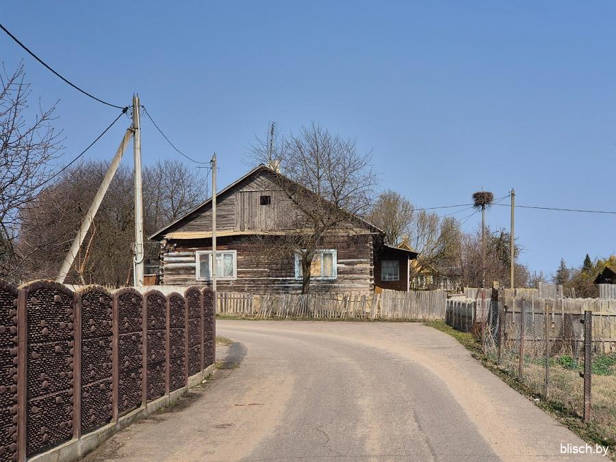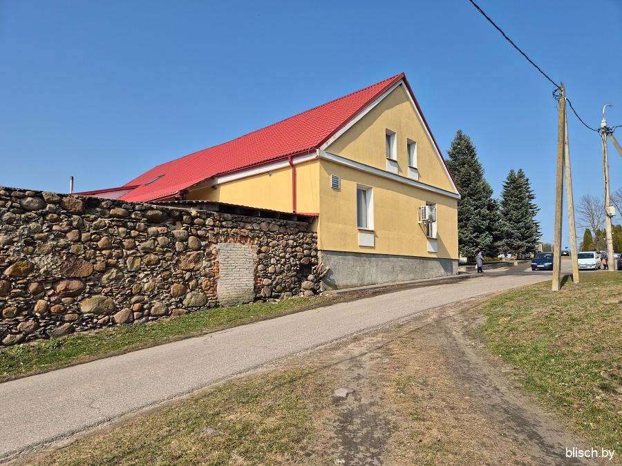Общественный транспорт делает остановку в деревне у магазина в старинном кирпичном здании на пересечении Гродненской и Северной улиц: