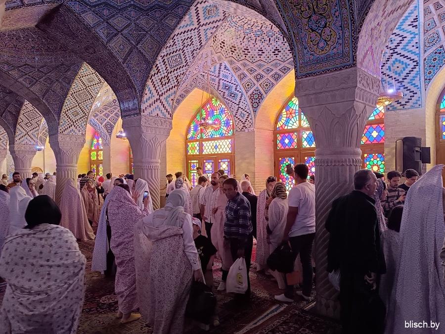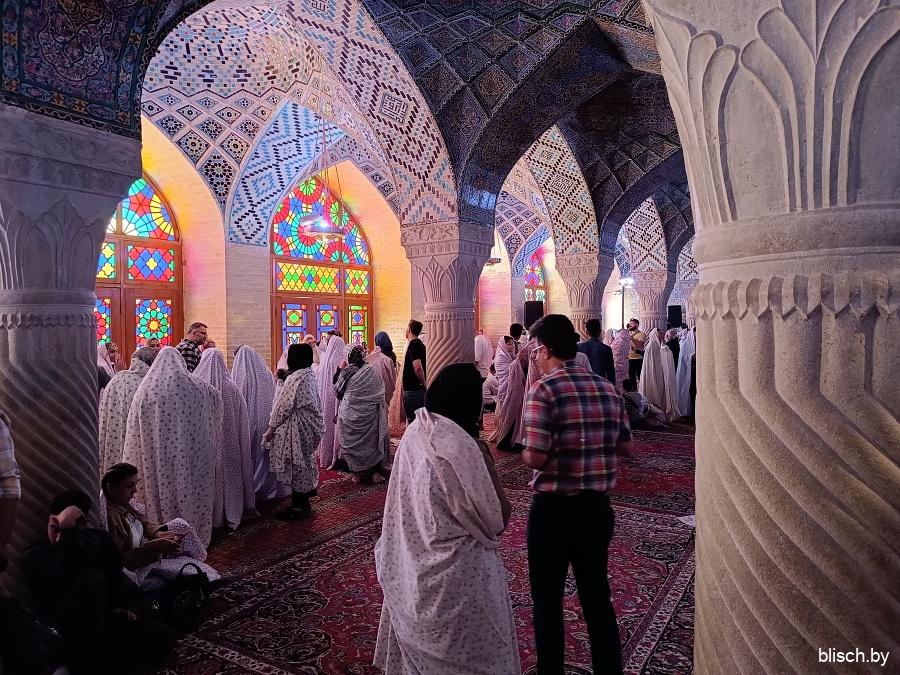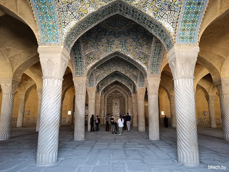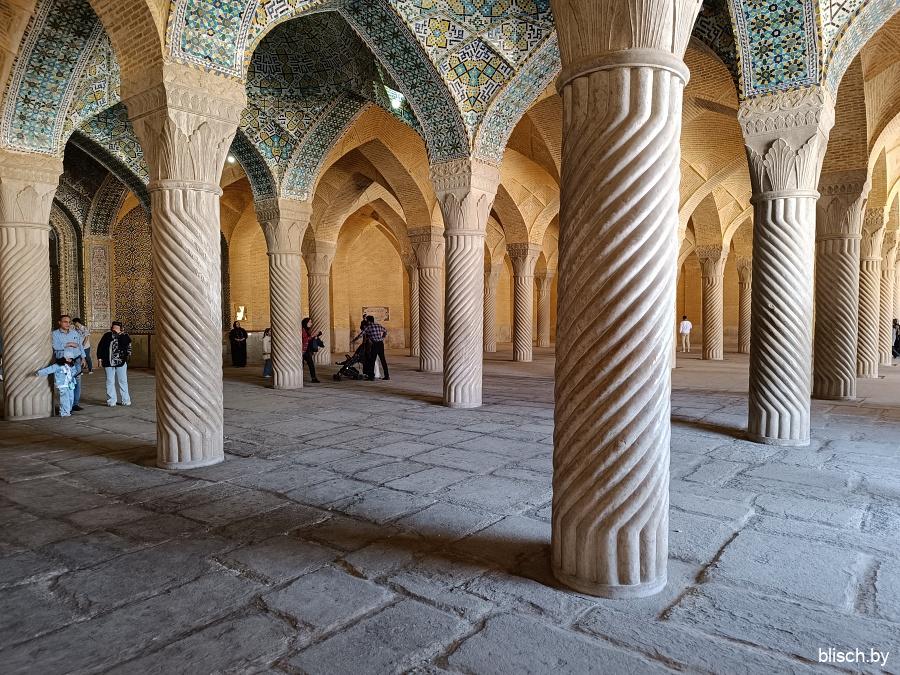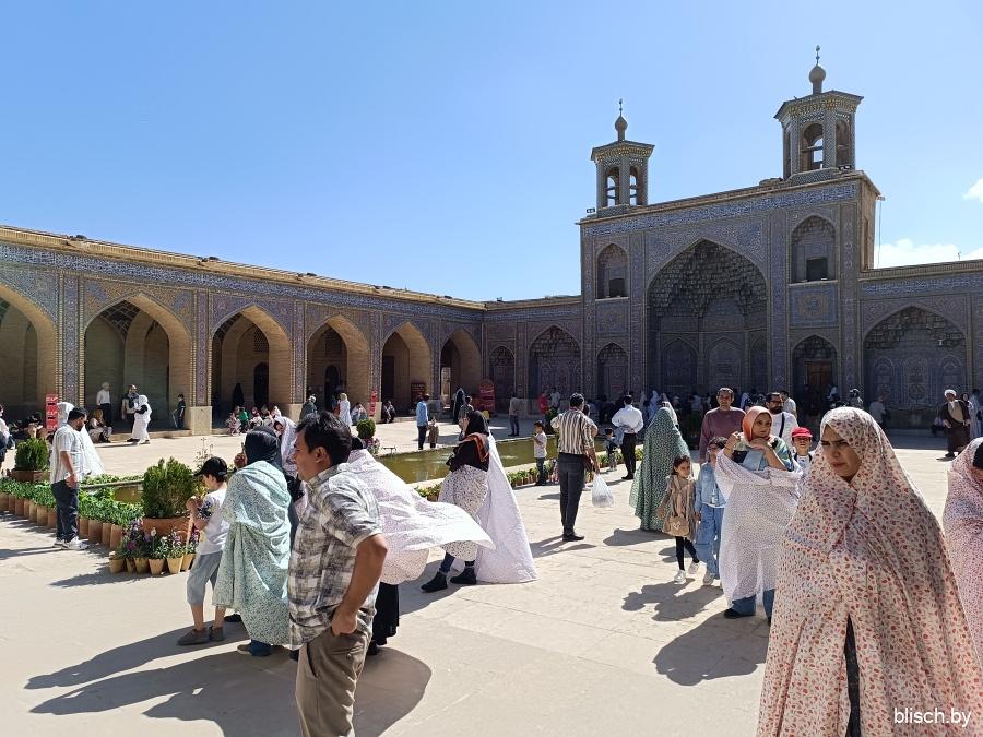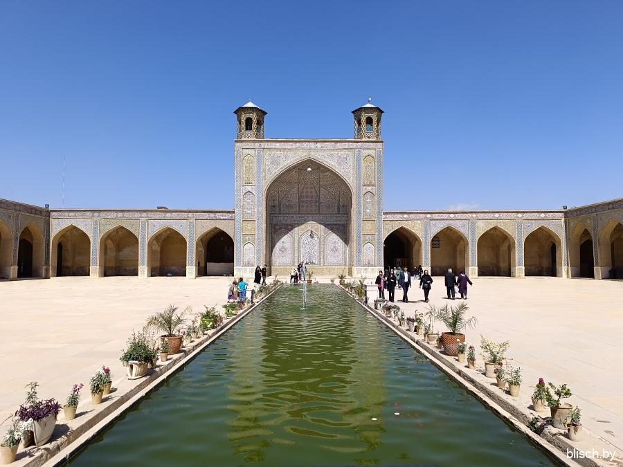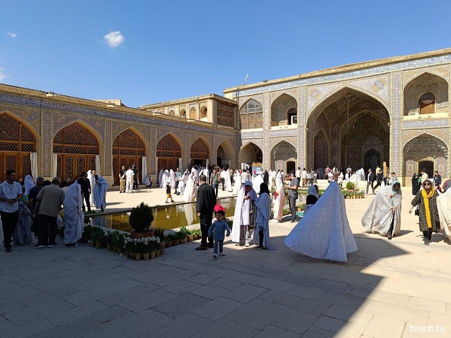 Мечети Шираза и вообще южных регионов Ирана часто дополнены бассейном и фонтанами во дворе. Это не только про эстетику или дань традиции персидских садов, наиболее развитых именно в регионе Фарс, но еще и функция — так прохладнее!