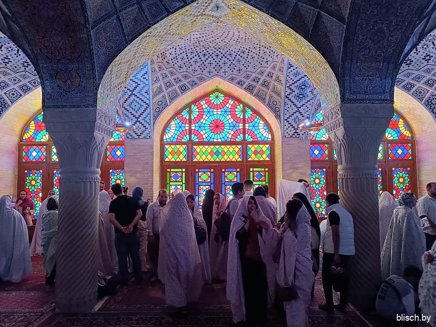 Да, о внутренних помещениях. Мечеть не только славится розами на плитке, но еще и витражами шабестана. Волшебное место, одно из тех, которое выпадает во вкладке «картинки», если набрать в поисковой строчке «Иран»: