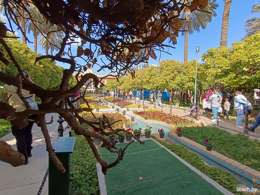 Несмотря на то, что Шираз лежит на 29-й параллели (а Дубай, например, совсем недалеко — на 26-й, то есть примерно как Витебск и Гомель), климат города не настолько жесток как мог бы быть: сказывается смягчающий эффект 1400-метровой высоты. И в конце марта, когда, казалось бы, уже должна стоять жара, природа в самом начале годового цикла: распускаются деревья, цветут отдельные цветы, на ветках болтаются цитрусовые прошлого урожая.