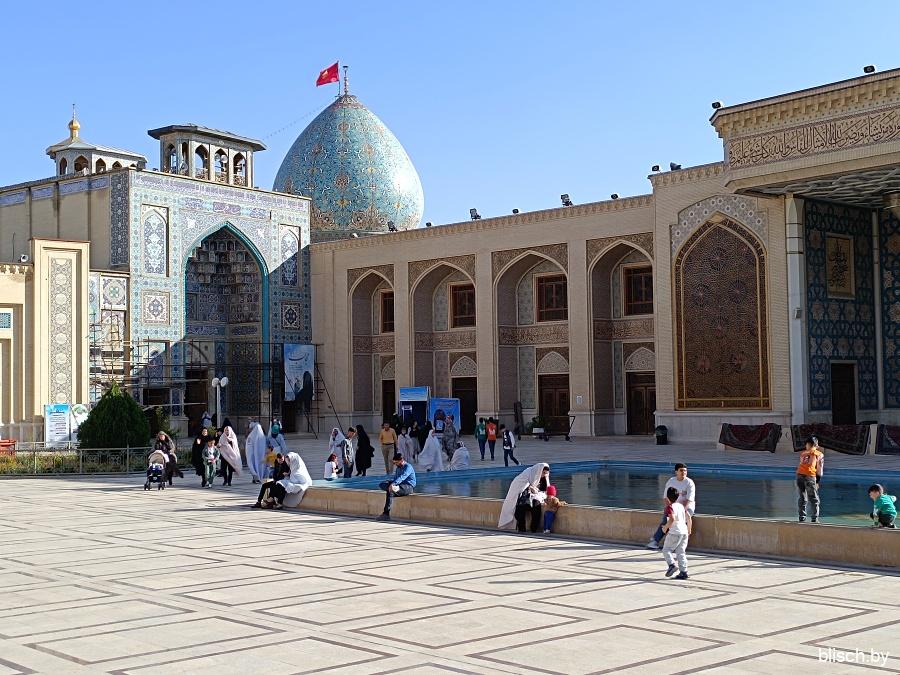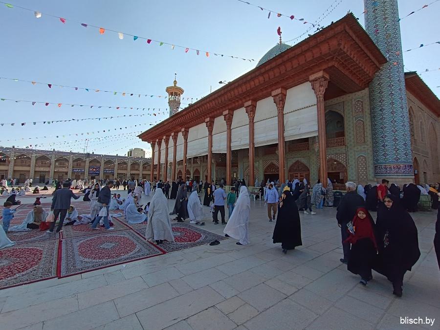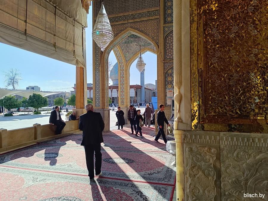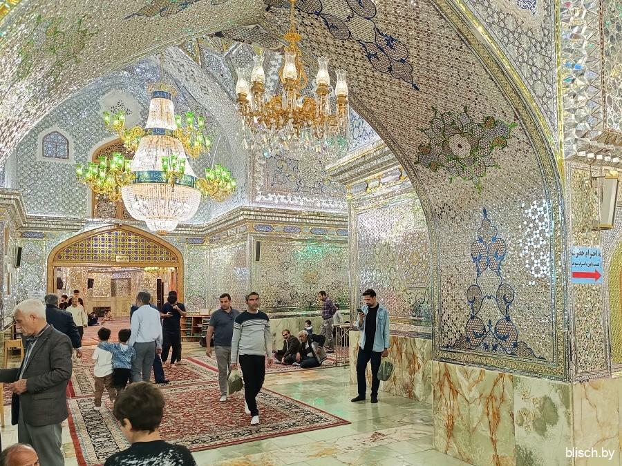Мчу дальше. Следующая локация — мавзолей Шах Чераг, место упокоения братьев восьмого имама шиитов Резы. Для немусульман и даже скорее не для шиитов столь большое внимание только лишь к родственникам имама (высшего духовного лица верующих на ранних этапах зарождения религии) малообъяснимо, но тут надо понимать, что Шах Чераг, видимо из всех подобных святынь в стране наиболее значимая, куда может зайти христианин.
