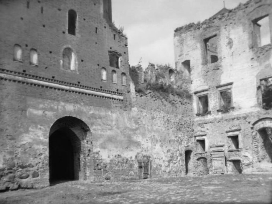 И внутри Мирский замок выглядел полуразрушенным как в 1949-м году (это год фото ниже), так и в мои школьные годы. Все то, что мы знаем сейчас, в основном готовилось в двухтысячные годы. Итак: