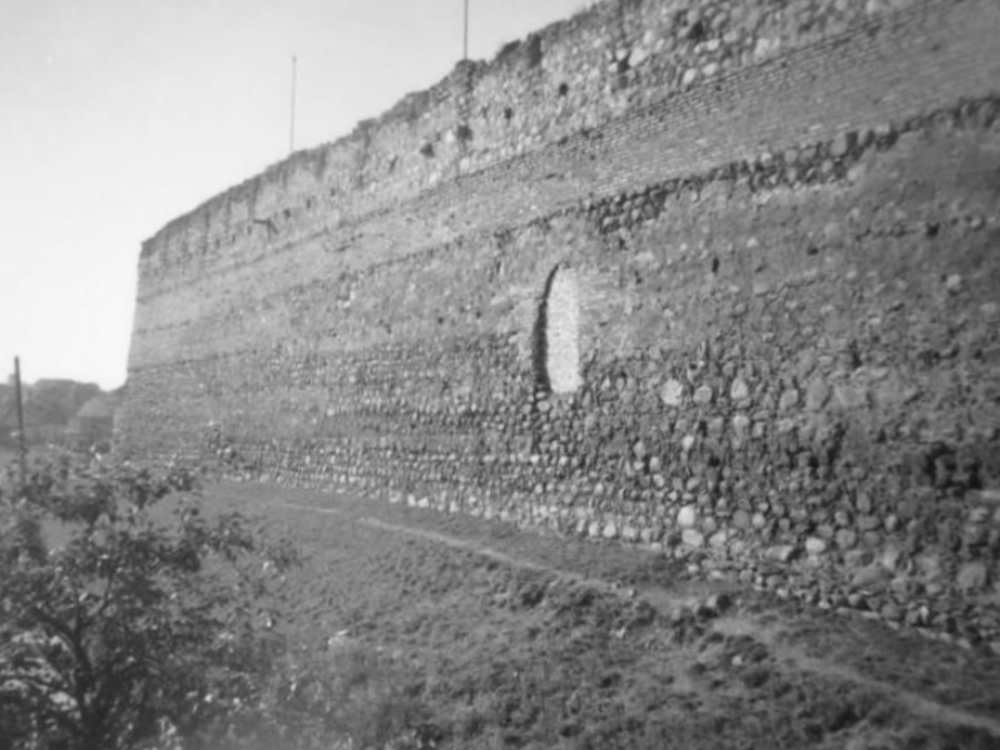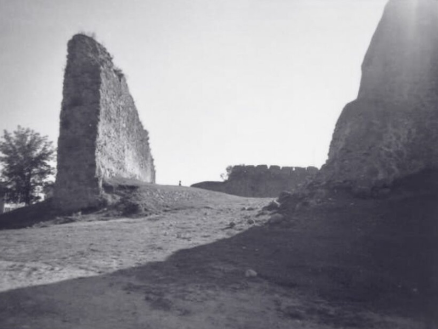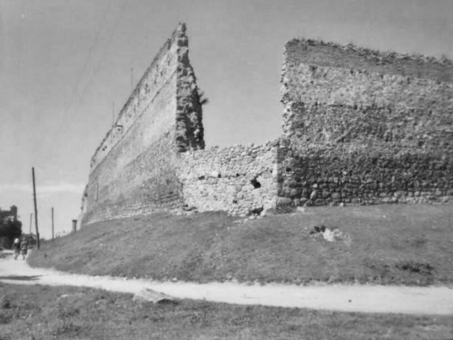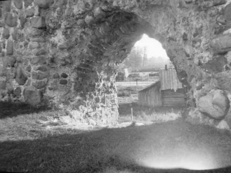 Эта же точка съемки, но спустя 40 лет. Как видим, снесена деревянная изба, приклеившаяся буквально к стене замка, поэтому пролом в северо-западном углу предстает во всей красе.