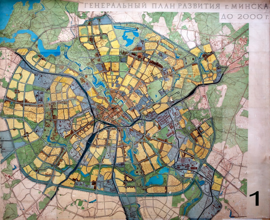 В 1985-м году в Минске был принят новый генеральный план развития до 2000-го года, заменивший аналогичный документ от 1965-го. Хотя план принимался до XXVII съезда КПСС 86-го года, он уже учитывал задачу обеспечить советских трудящихся 22 «квадратами» жилой площади на брата (с текущих 14,6 метра). Годом спустя задача была сформулирована генеральным секретарем Михаилом Горбачевым еще более прямо: «Каждой советской семье — отдельную квартиру к 2000 году». Программа получила название «Жилье-2000» и предполагала ввод в строй фантастические 2,25 миллиарда квадратных метров по всему СССР, но в 1991-м Союз распался. Последний советский генплан Минска «видел» те микрорайоны, которые были построены только в наше время и даже те, которые пока так и остаются на бумаге. Давайте же смотреть.