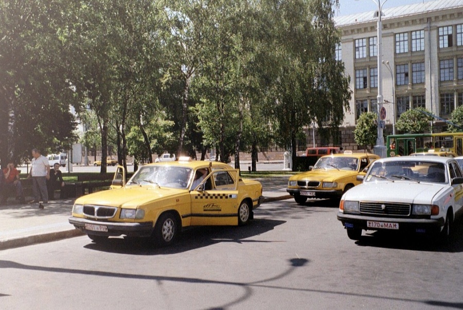 В ходу полно такси государственного автопарка «Легавтотранс», обслуживавшего пассажиров машинами ГАЗ-3110:
