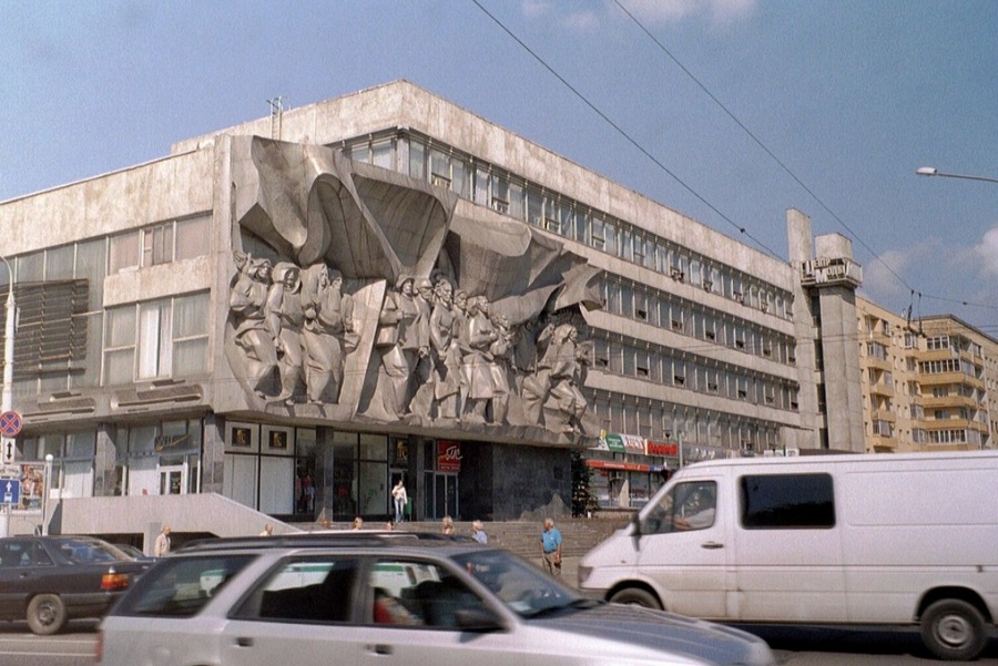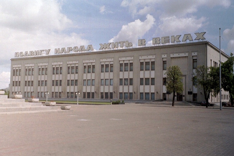 Старое здание музея на Октябрьской площади, где теперь вместо него бизнес-центры: