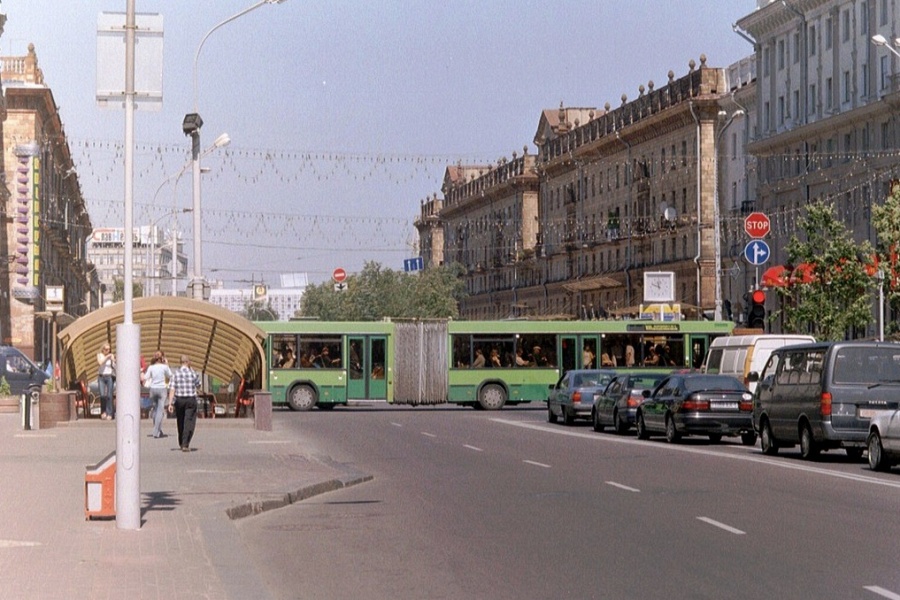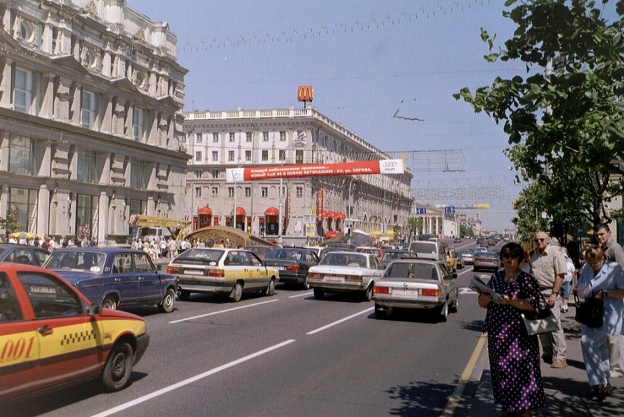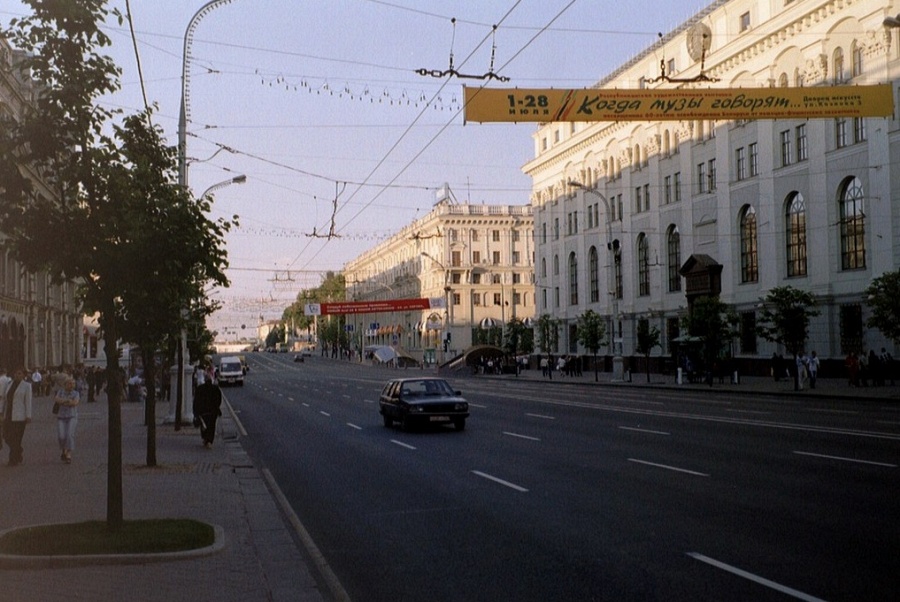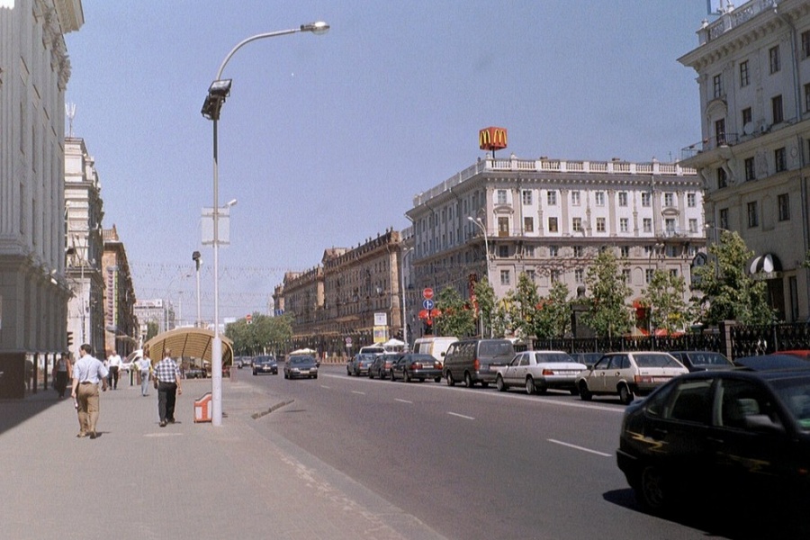 Очень долго я носил в себе идею так отснять Минск, чтобы уловить в нем атмосферу Минска моей юности. Звучит максимально абстрактно и может даже невыполнимо, но примерный путь решения задачи нащупывался в ходе мелких проб. Мне нужен был солнечный летний день, не слишком сильно изменившиеся за последние 20 лет места города и какой-нибудь ретро-цветокор, создающий ощущение пленки типа Kodak Gold 200. Машину времени таким образом не построишь, но добиться нужных ощущений, кажется, реально. Впрочем, теперь это уже не важно. Подписчик телеграм-канала «Минск и минчанин» скинул в личку ссылку на фотосет некоего британского туриста Тима Брауна. Сразу я хотел сделать только заметку, но полистал снимки и понял, что мне скинули не медь, а золото. Тим Браун лучше, чем только можно представить, решил задачу уловить мой юношеский Минск — город, в котором мне 22 года. Это не просто документ эпохи, а фиксация атмосферы, духа, сути белорусской столицы два десятка лет назад. С трепетом отобрал самые характерные фотографии и начинаю.
