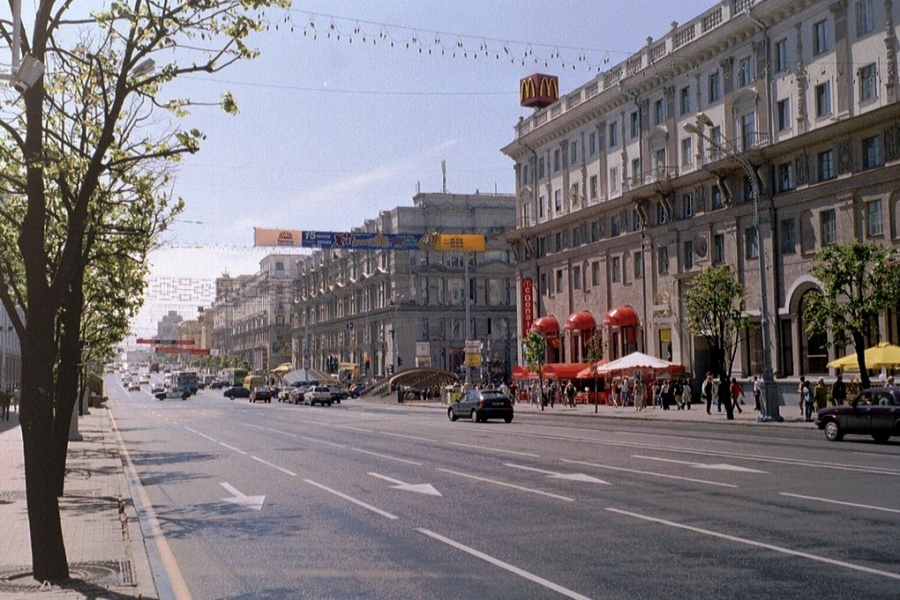 Главное отличие Минска 2004-го от сегодняшнего в том, что он… пустой. В том смысле, что в нем намного-намного меньше информационного шума — меньше рекламы, вывесок, заметно ниже плотность торговли и услуг на первых этажах зданий. Мы и не заметили как повзрослел в этом плане город, но снимки британского гостя это хорошо показывают.
