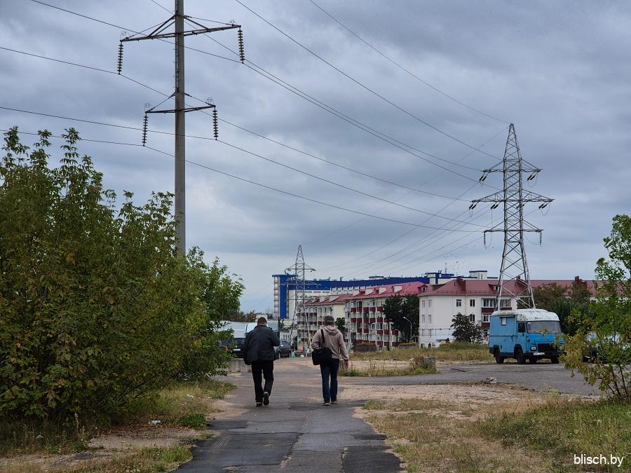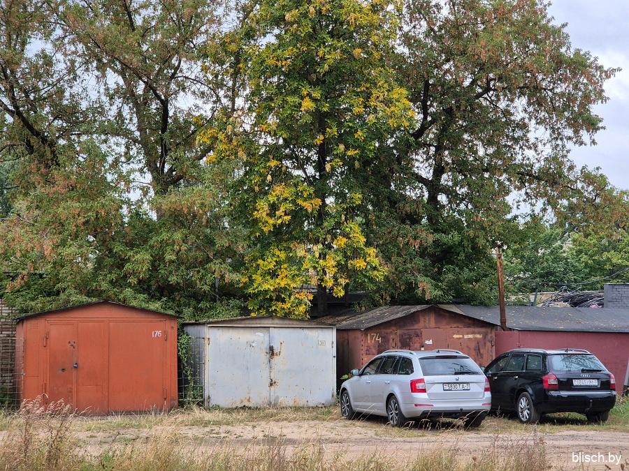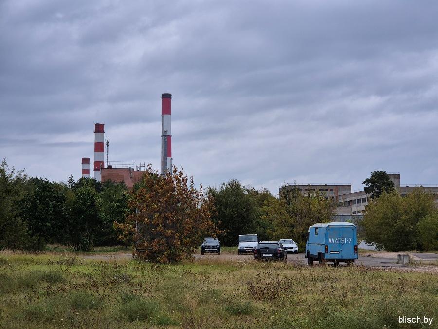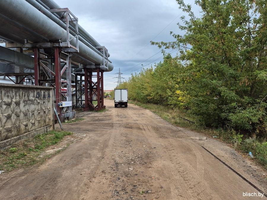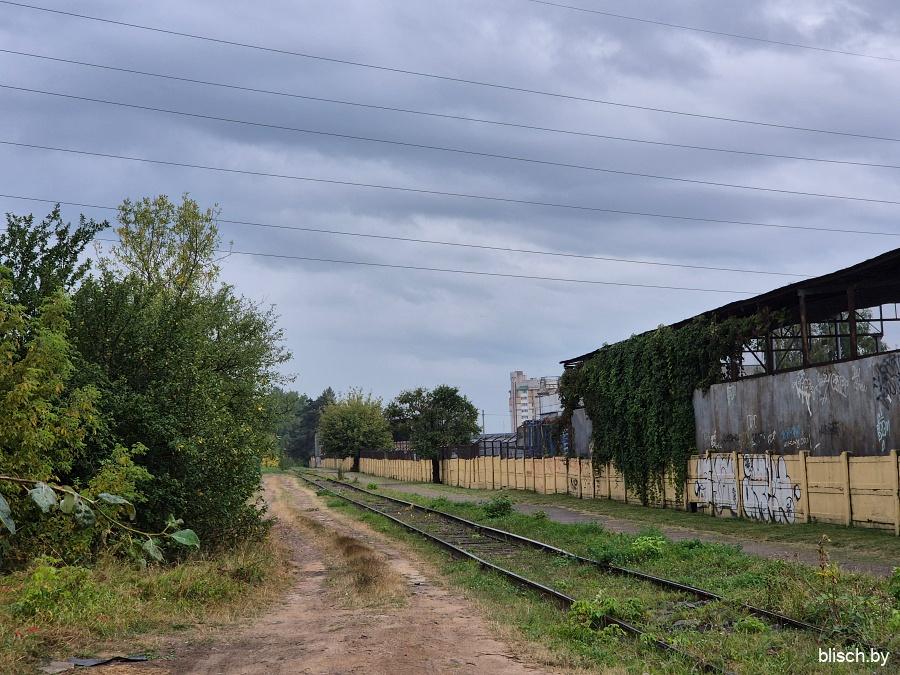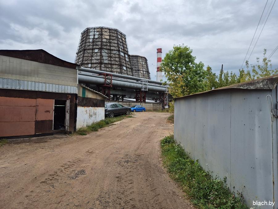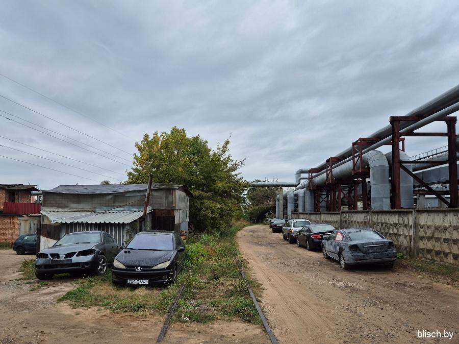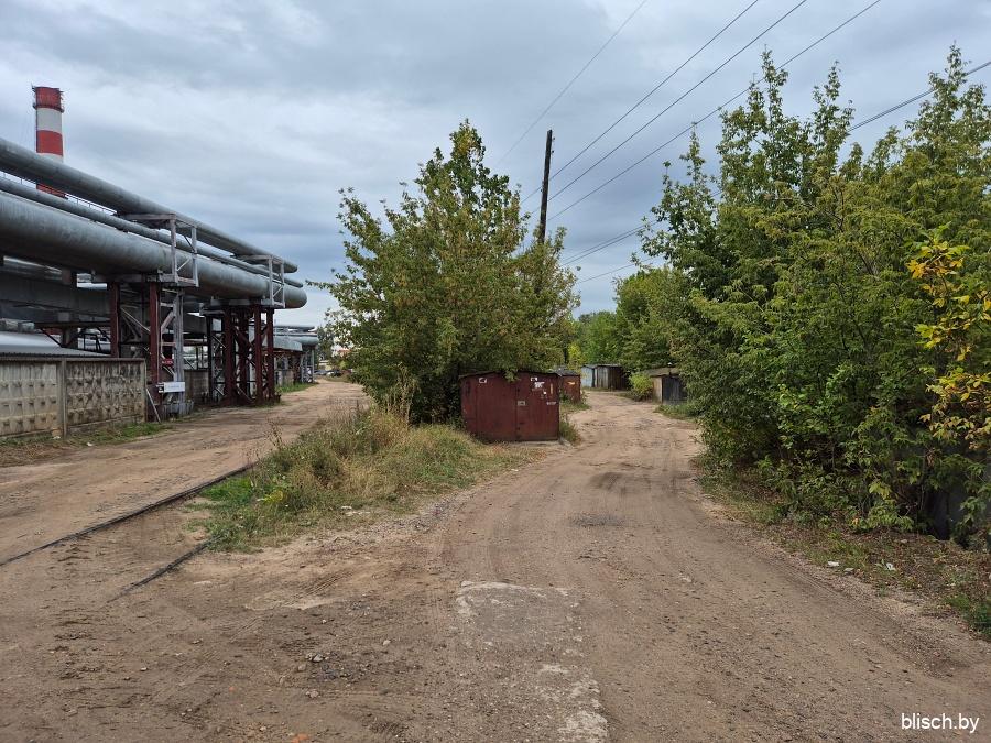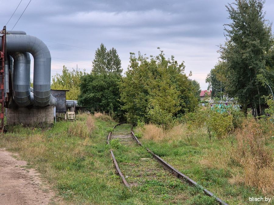 Разливы гаражных боксов вплотную подступают к теплоэлектростанции. В земле и траве лежат рельсы старого подъездного пути к МАЗу, замененного веткой от станции Шабаны.