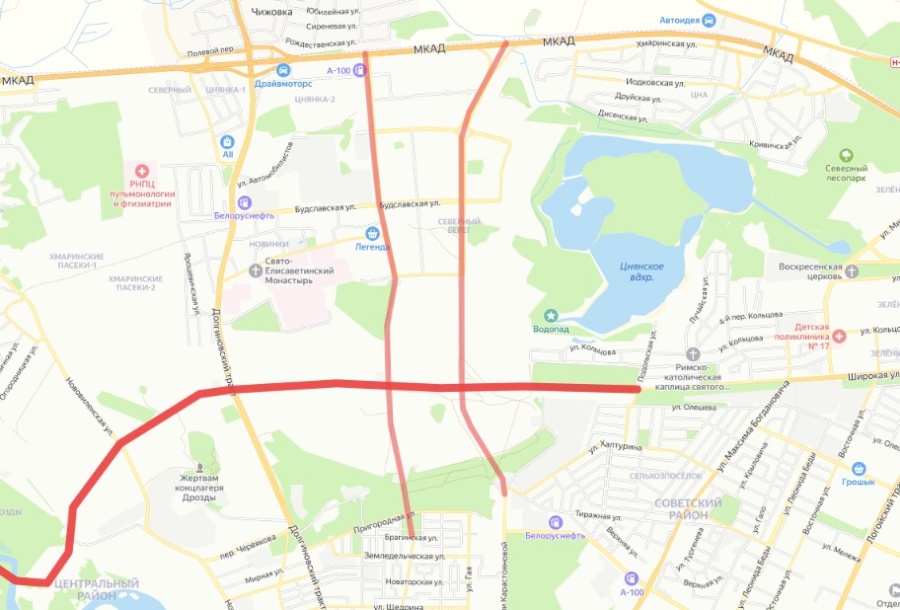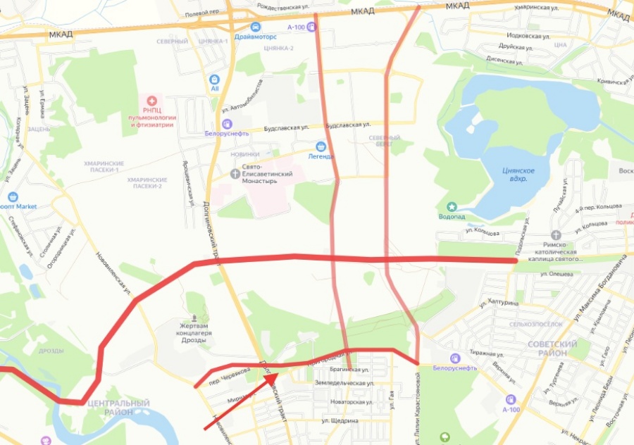 Сейчас чтобы попасть в застраиваемую часть Северного Берега, нужно выбирать маршрут по внутреннему кольцу МКАД, откуда сделано два съезда в микрорайон, либо крутить по Долгиновскому тракту и Будславской улице. Этого, конечно, для будущей застройки очень мало, поэтому Северный Берег будет получать новые связи с основным телом Минска. Через микрорайон проляжет очередной участок третьего транспортного кольца с перспективой выхода на Логойку и проспект Победителей, а еще должна быть организована новая связь с Орловской улицей. Все такие связи я отрисовал на карте, а карта дальше в тексте.
