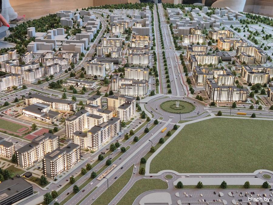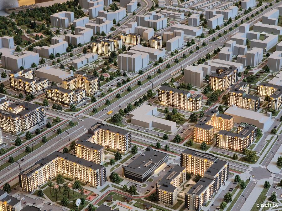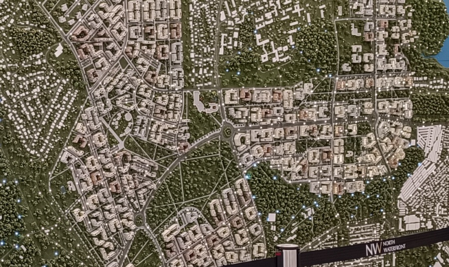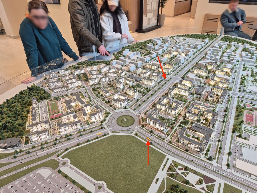 Макет в отделе продаж охватывает следующий участок города, то есть лишь часть будущего микрорайона: