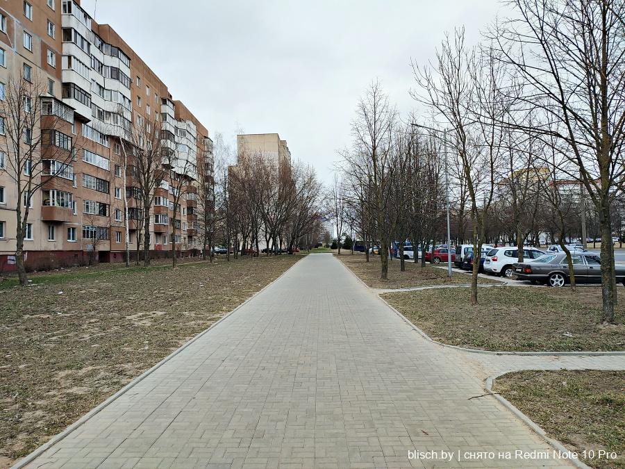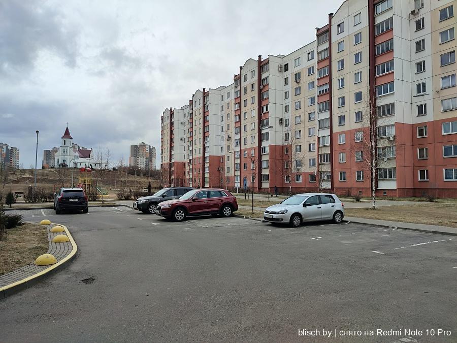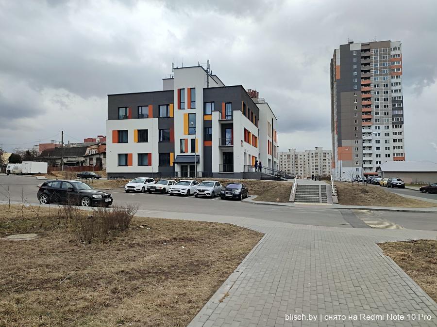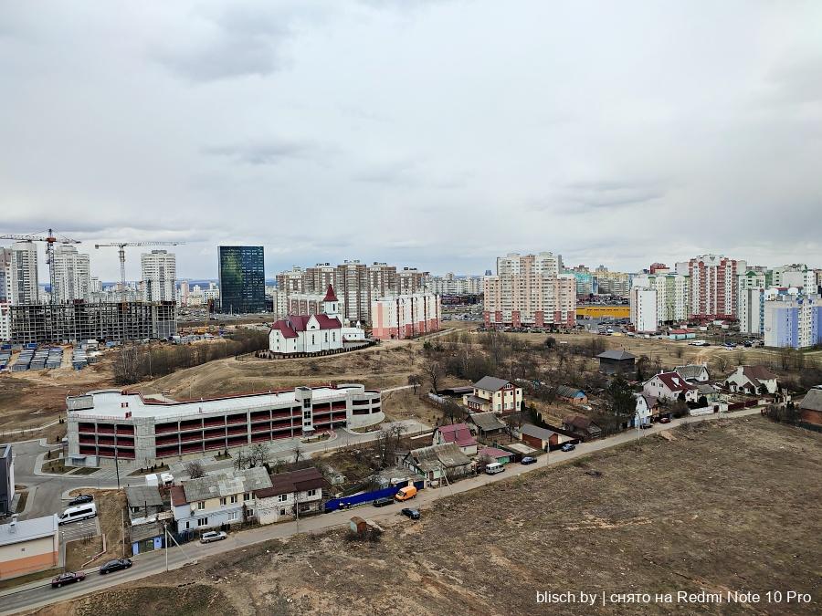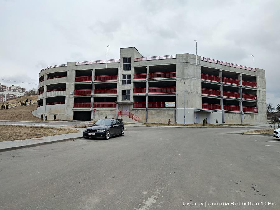 А это уже многоуровневый паркинг, возникший как спутник группы высоток на месте бывшего частного сектора по Ивенецкой улице. Ее начали сносить в 2018-м, убрав примерно две трети усадеб в границах Красного Бора-1:
