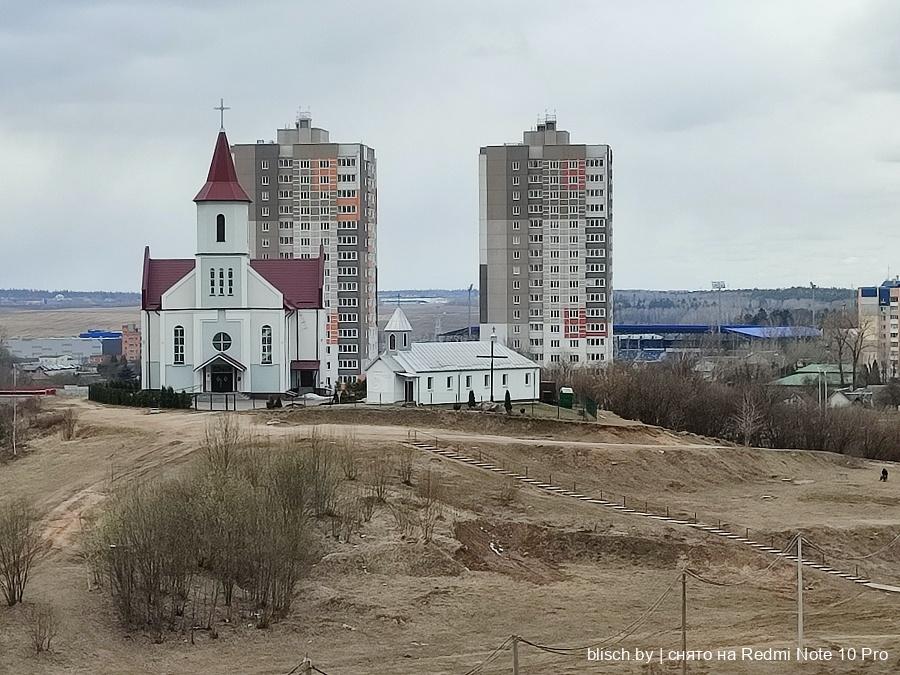 На холме католический храм Богоматери Будславской. Это одна из самых высоких точек Минска, она уступает всего несколько метров холму в районе завода печатных плат.