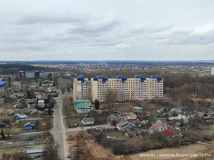 У меня без особого труда получилось пробраться в подъезды двух столбиков и поснимать микрорайон сверху. Сначала кадр на поселок агрокомбината, который будет значительно перестроен и уплотнен многоэтажками: