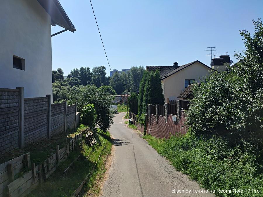 Часть переулка зашита в сплошные заборы, создающие ощущение тоннеля: