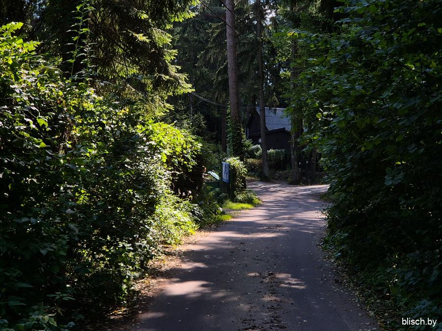 Я был во многих дачных поселках страны и могу сказать, что совминовские действительно выглядят совсем иначе. Дело не только в нескольких оригинальных постройках того времени (о них я напишу ниже), а о поразительной «залесованности» пространства. Дома стоят натурально посреди взрослого леса в окружении высоченных сосен. Это красиво!