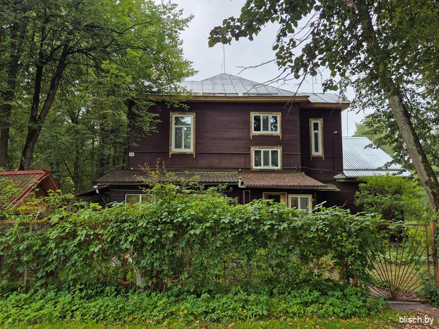 До номенклатурных дач можно добраться автобусом №386 от Уручья, выходить нужно на остановке «РНПЦ медицинской экспертизы и реабилитации». Можно многими другими автобусами до остановки «Кашинского», а потом с километр пешком, и я выбрал именно такой вариант, потому что хотел сфотографировать вот это здание: