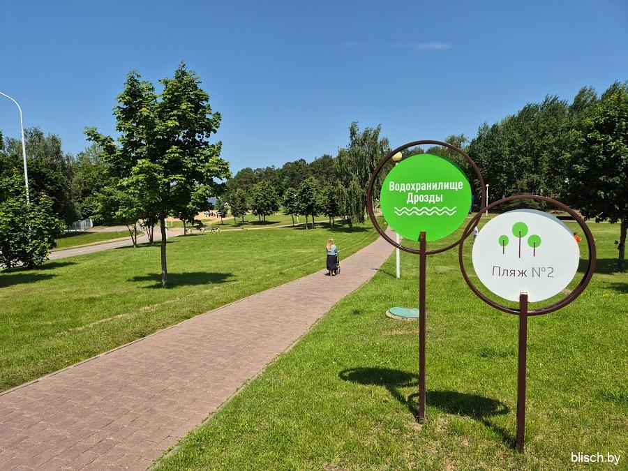 Чем еще хороши Дрозды, так это оборудованными дорожками для пеших и велосипедных прогулок. О, за этим сюда можно ехать специально. Основная дорожка проложена вдоль набережной: