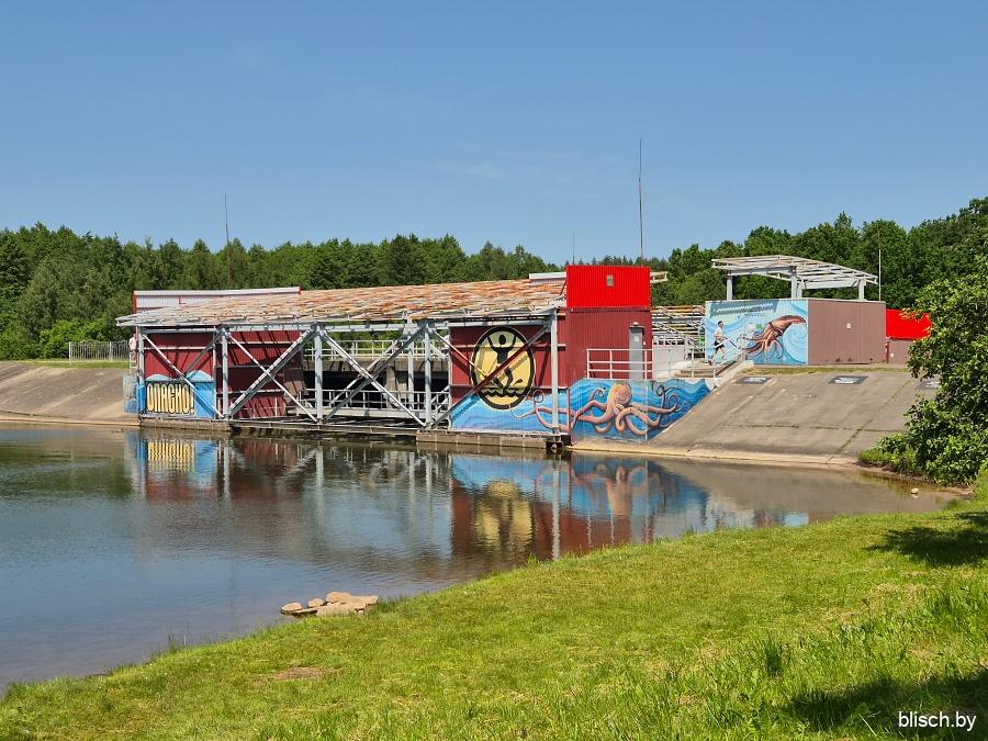 Так как водохранилище является частью Вилейско-Минской водной системы, ожидаемо, что на нем можно найти гидротехнические сооружения. Чисто утилитарное здесь оно одно — шлюз с микроГЭС между озером и Свислочью. В какой-то момент дорожка проходит мимо него: