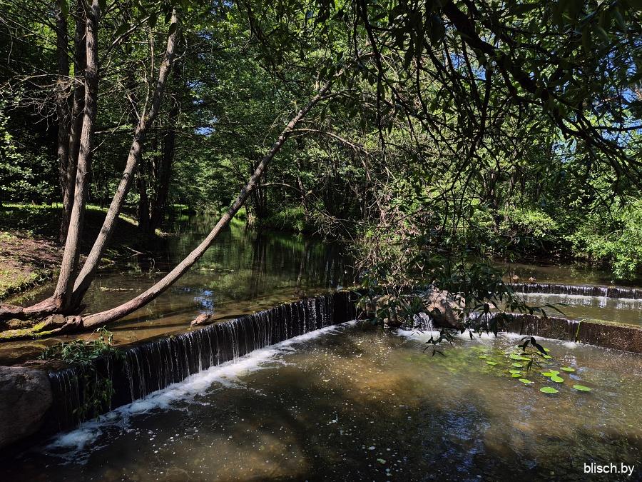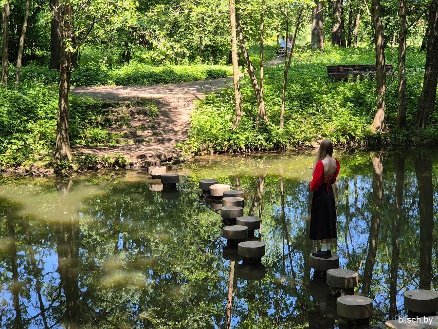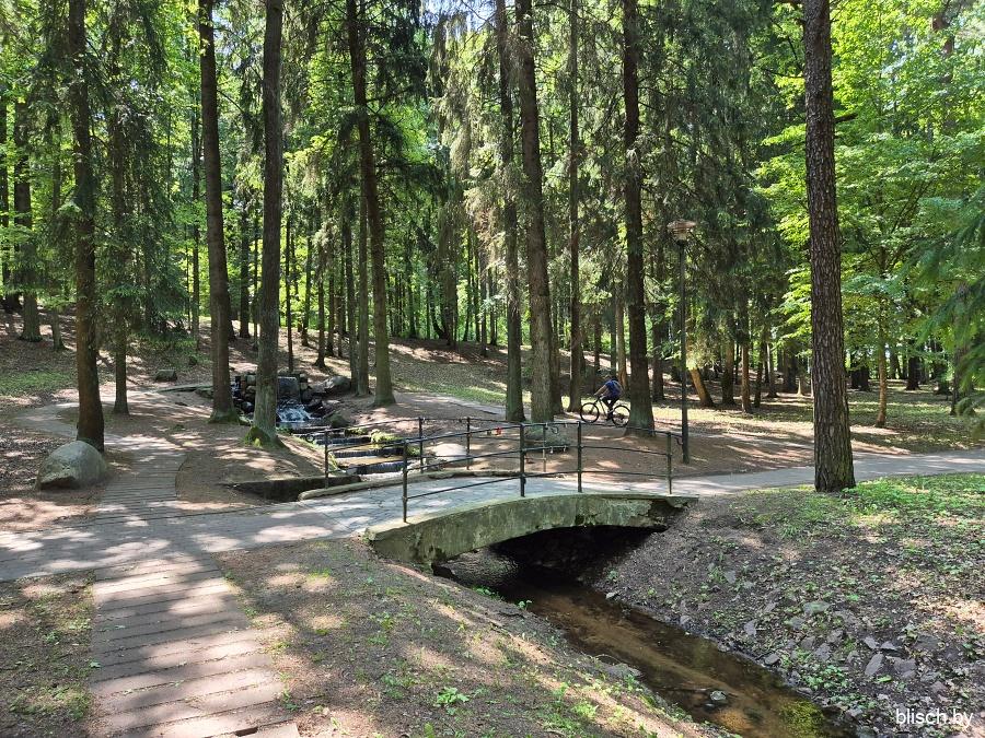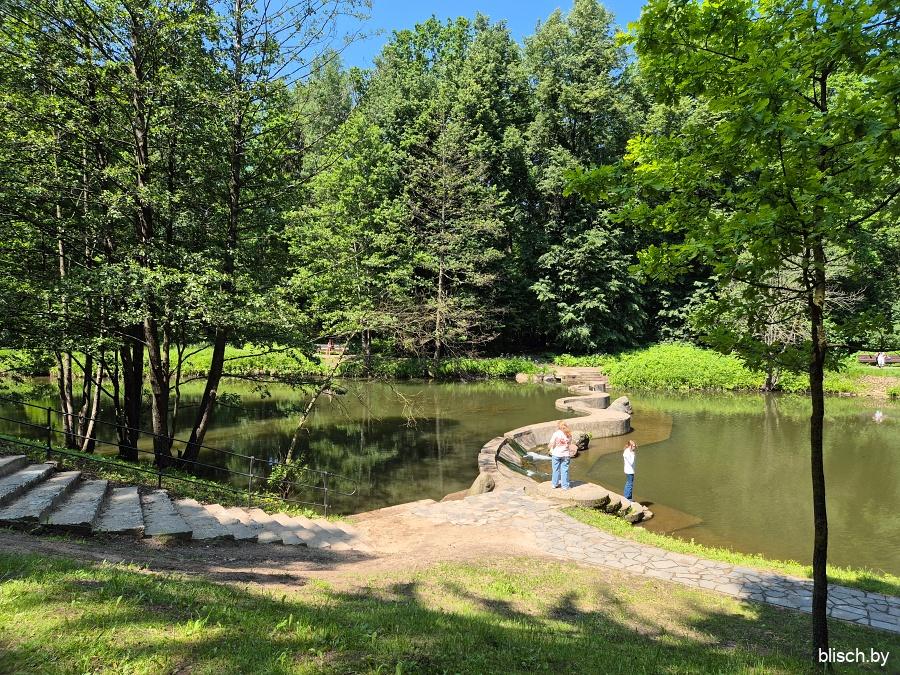 Дорожка уходит вглубь леса. Еще одно примечательное место — искусственный водопадик (отключаемый, правда, на холодный период года). Водопады в Беларуси вообще крайняя редкость, а уж на территории Минска их и вовсе на перечет пальцев двух рук: