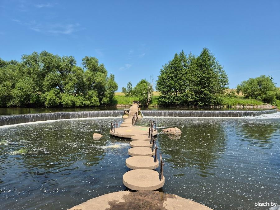 Ну а мы пойдем дальше. Озеро «превращается» в речку, которая раз-пораз перекрыта различного вида бетонными заграждениями, выполняющими чисто эстетическую роль. По ограждениям можно перейти на другой берег: