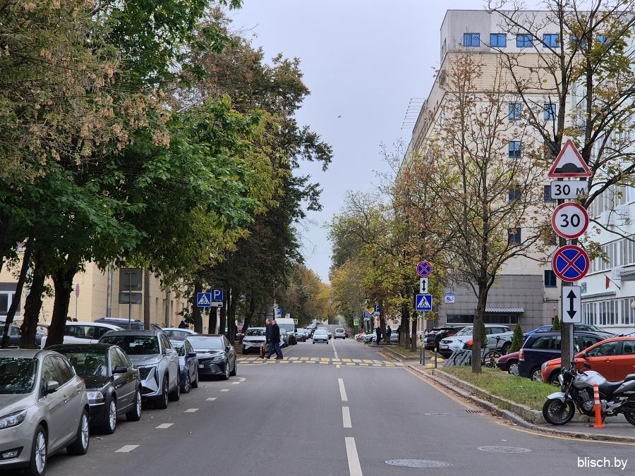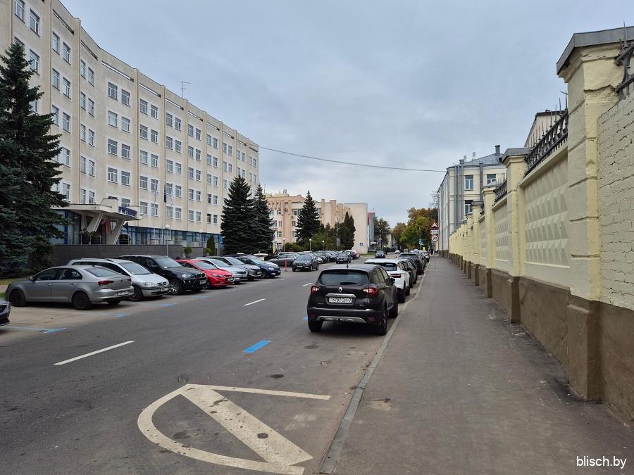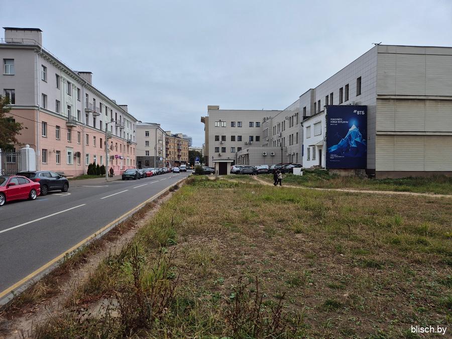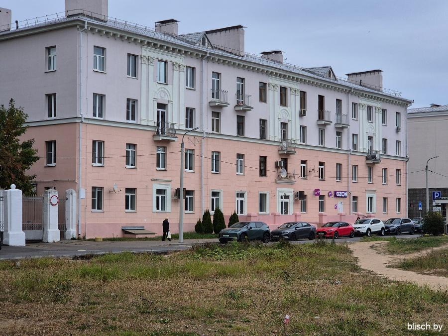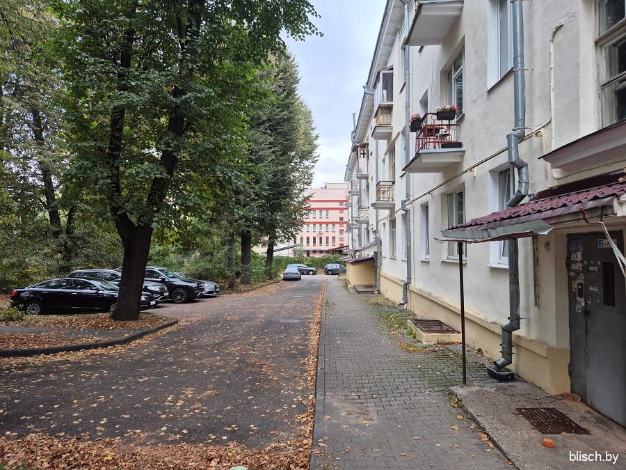 Раньше, чтобы пешеходу попасть в самое начало Фабрициуса, можно было пройти Добромысленским переулком между ГУВД Мингорисполкома и гимназией №41, но в 2025-м году все изменилось. Гимназия переехала в связи с прокладкой первого транспортного кольца и попаданием в санитарную зону, а ее здание перестроили и расширили, также сделав частью управления внутренних дел, что позволило переулок забрать под закрытую территорию ведомства. В общем, мне нужно было нырнуть во дворы Московской, а именно во двор дома-межвоенки №8:
