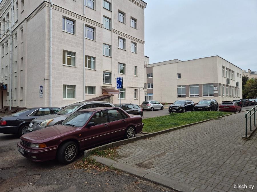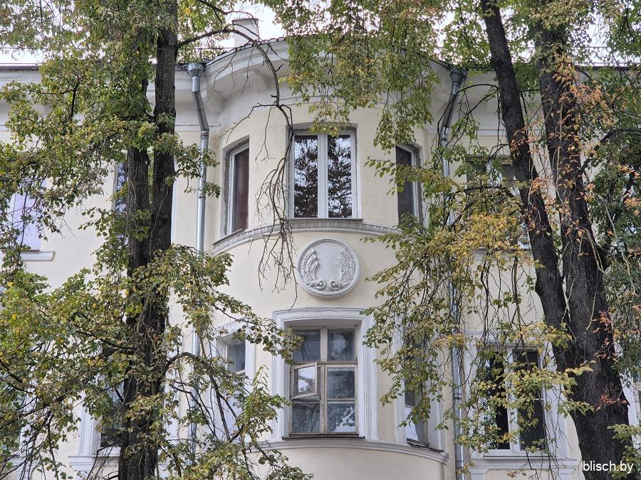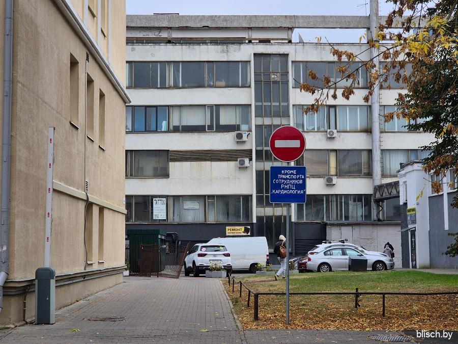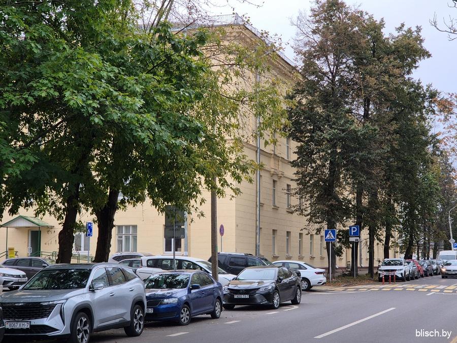 Бывшая поликлиника, а теперь РНПЦ «Кардиология» на Фабрициуса, 13. Здание довоенное и, вероятно, было жилым домом, но перестроено в неоклассическом стиле: