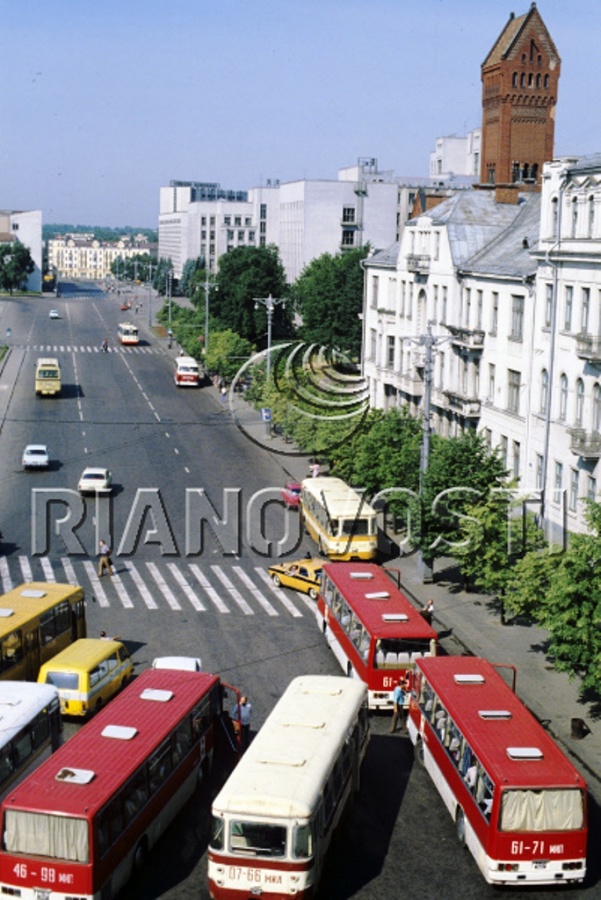 677-е приходили в Минск почти каждый год, но до конца 70-х буквально в единичных эксемплярах. Вот фотография центрального проспекта, сделанная в 1973-м году. В кадре один из четырех автобусов искомой модели, которыми обладал город на тот момент: