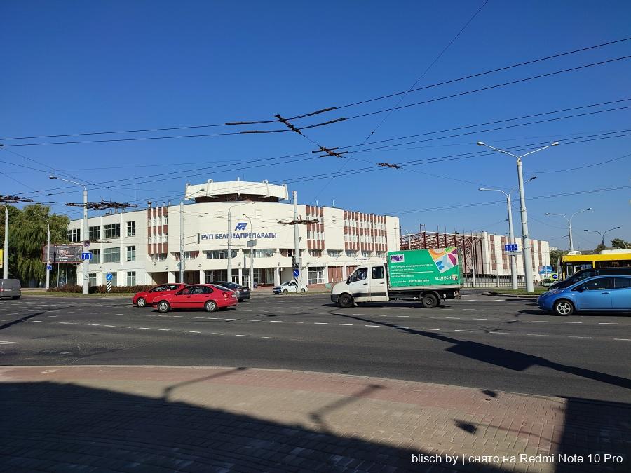 На перекресток выходят здания «Белмедпрепаратов», бизнес-центра Caspian Plaza и «Белгоспищепрома»: