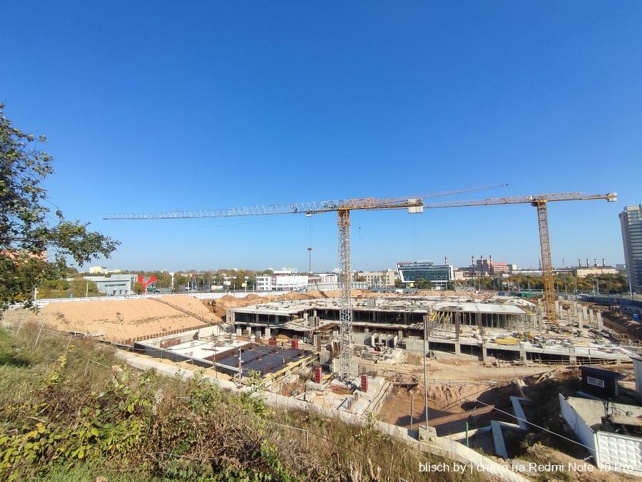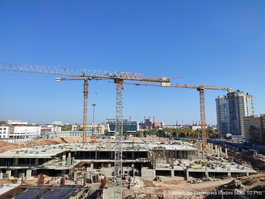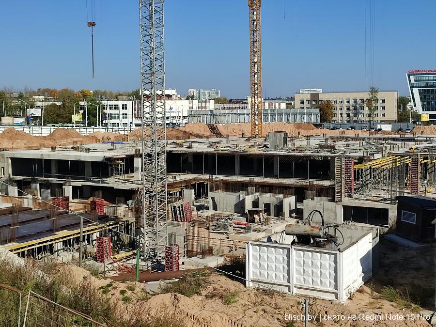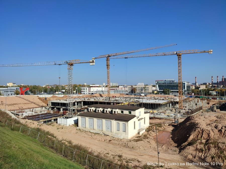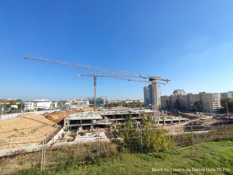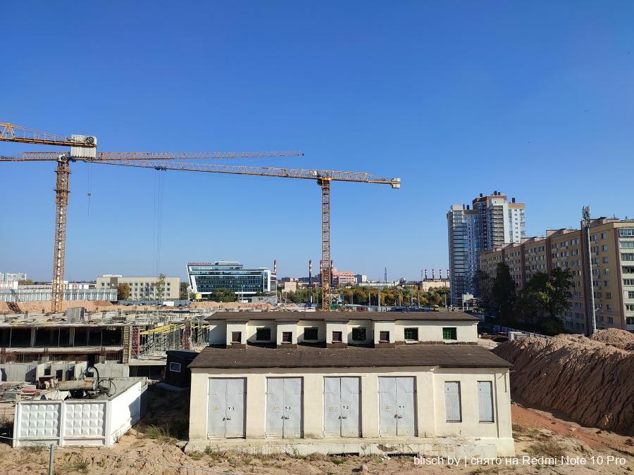 Чтобы оценить масштаб стройки, нужно забраться на насыпь железной дороги Минск — Гомель, ограничивающей квартал Маяковского с запада:
