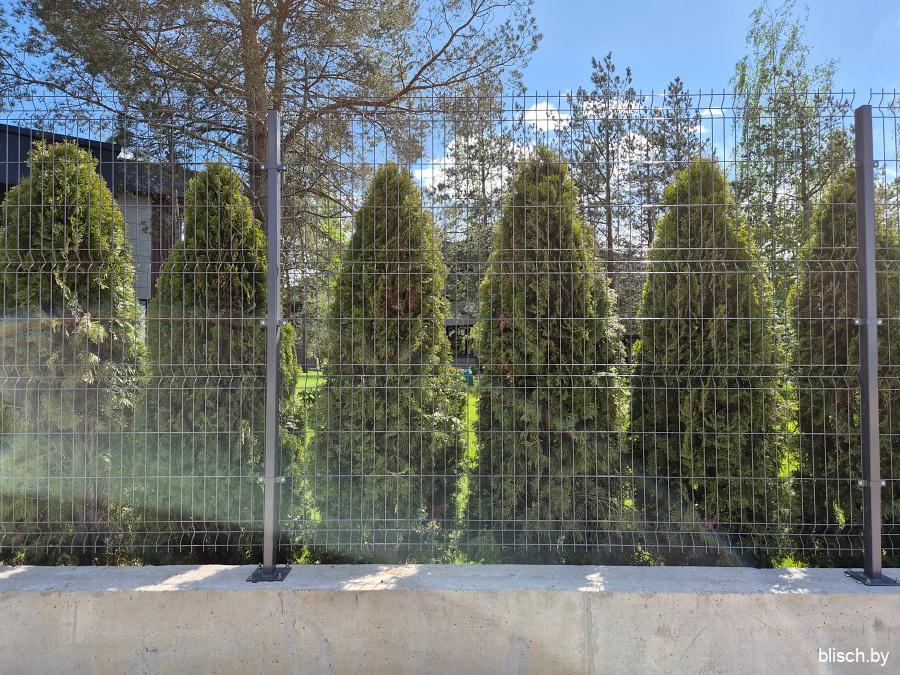 Забор активно обсаживается туями, поэтому что-то снять в нормальном виде практически невозможно: