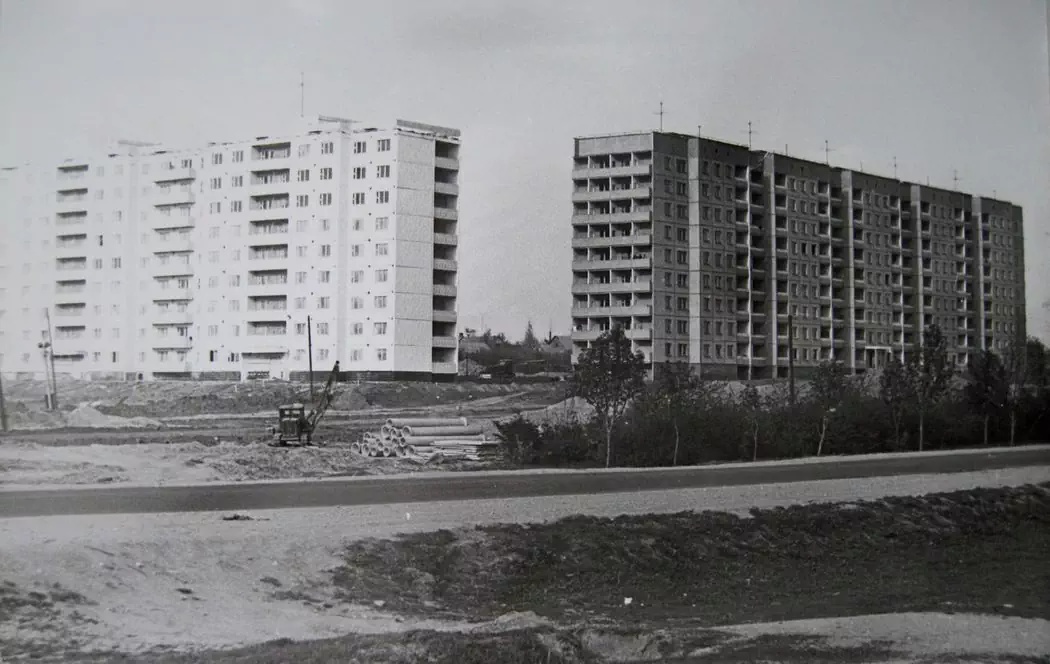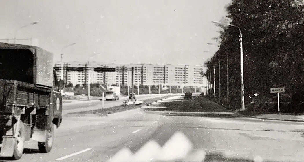 Здесь на снимке строительство многоэтажек в Чижовке. На переднем плане минская кольцевая автомобильная дорога в ее изначальном исполнении, в две полосы: