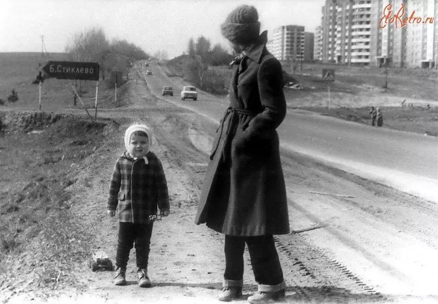А это подход к нему со стороны Ангарской и Уручья в районе Байкальской улицы, наверное, наиболее известный «исторический» снимок МКАД. Теперь тут развязка, а тогда был скромный поворот в деревню Большое Стиклево: