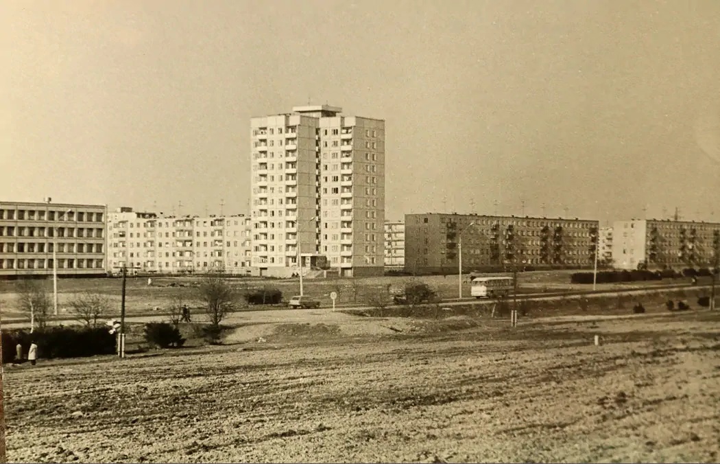 Вот еще хороший снимок. Здесь пустырь будущего микрорайона Магистр. Вдалеке виднеются высотки у метро «Восток», ближе пирамидка общаги БНТУ. К слову, судя по картам, третья из пирамид строилась уже в 90-х годах. Это так? Для меня открытие.
