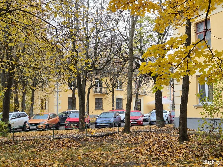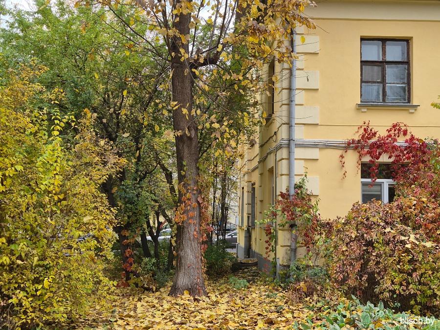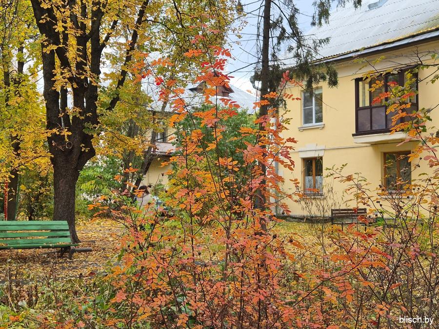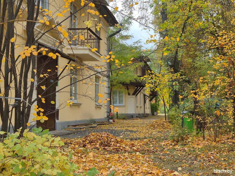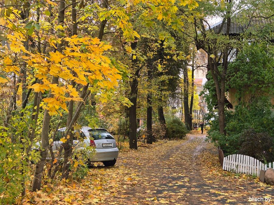 В Осмоловке много высажено клена и липы, а они желтеют примерно синхронно, поэтому в какой-то момент старенький массив погружается в сплошную желтизну.