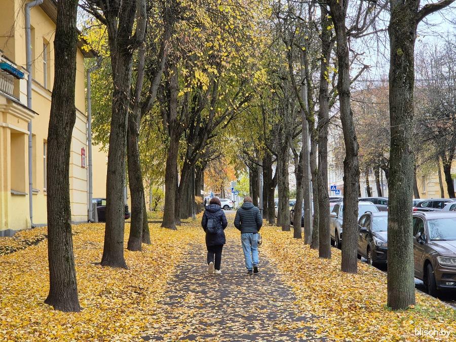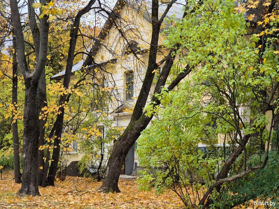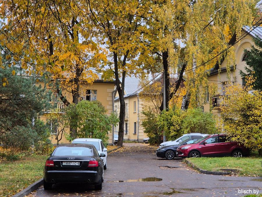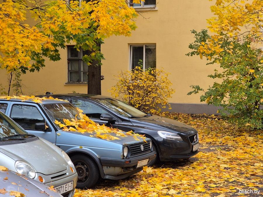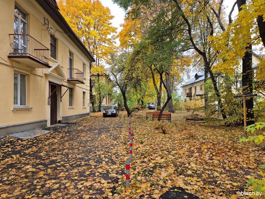 В Осмоловке много высажено клена и липы, а они желтеют примерно синхронно, поэтому в какой-то момент старенький массив погружается в сплошную желтизну.