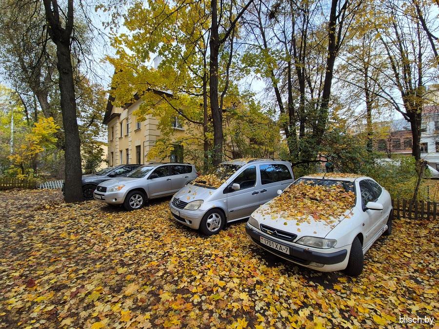 Листву, конечно, подметают и убирают в мешки, но за день насыпается слишком много, процесс непрерывный: