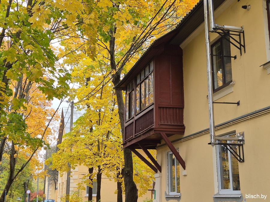 Если бы у меня была задача фотографировать конкретно жилые дома, то ничего и не вышло бы — слишком, слишком все заросло. Однако это осенью это именно что плюс.