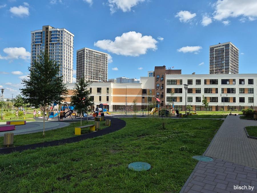 Первые школы-гиганты Минска, потребовавшиеся в связи с существенным ростом размерности микрорайонов. Такие учебные комбинаты рассчитаны на 1320 учеников, могут без проблем работать в две смены. Впервые школы выросли до четырех этажей.
