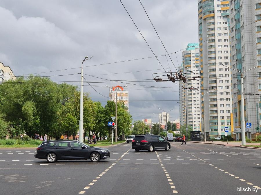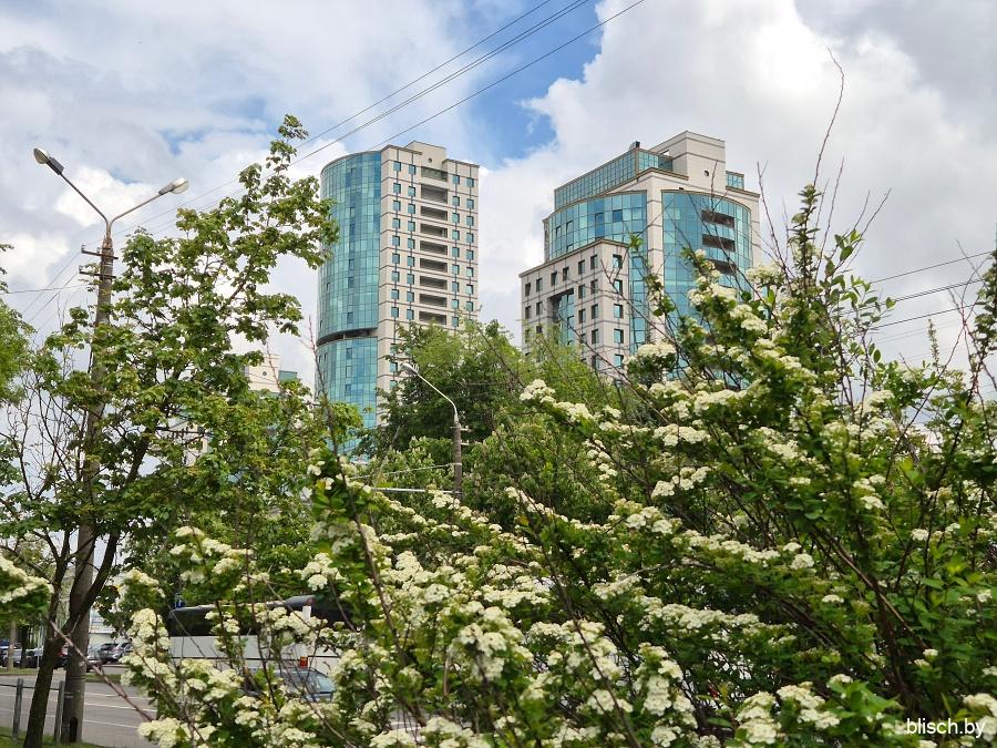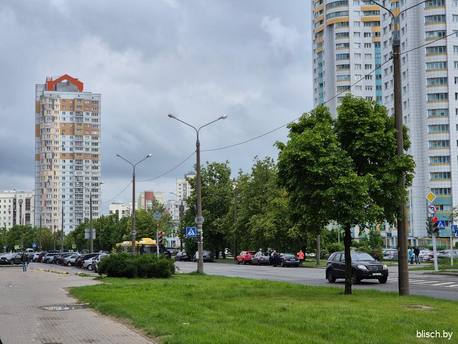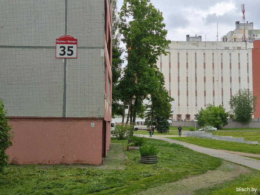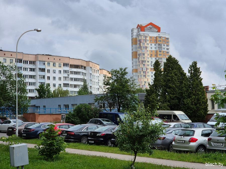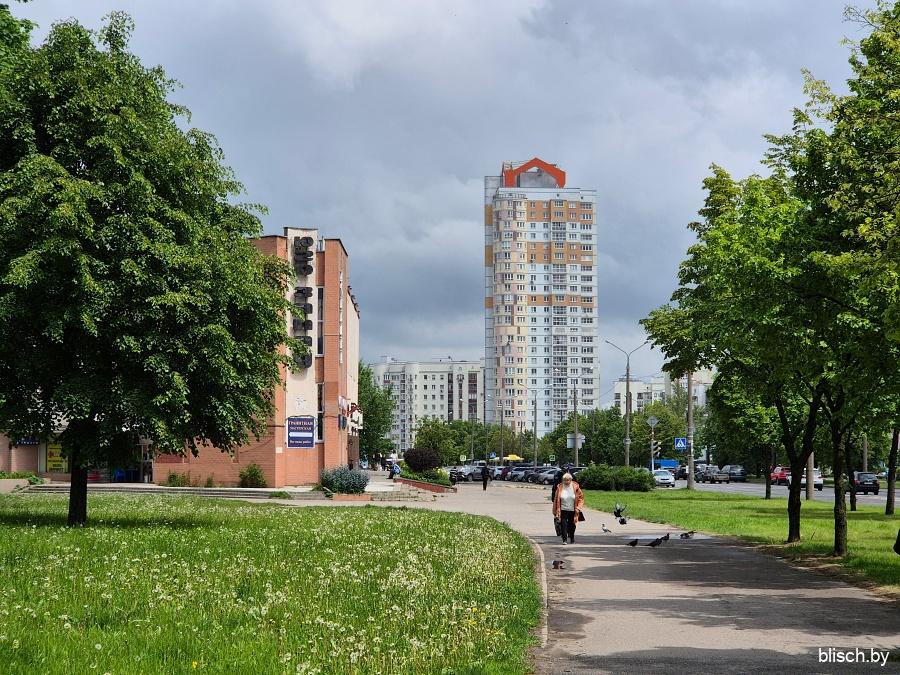 Угол 1-го квартала на перекрестке Голубева и проспекта газеты «Звязда», где сходятся вершины всех четырех массивов Юго-Запада: здесь в в 1998-м была поставлена 21-этажная монолитная башня по проекту Анатолия Фридмана.
