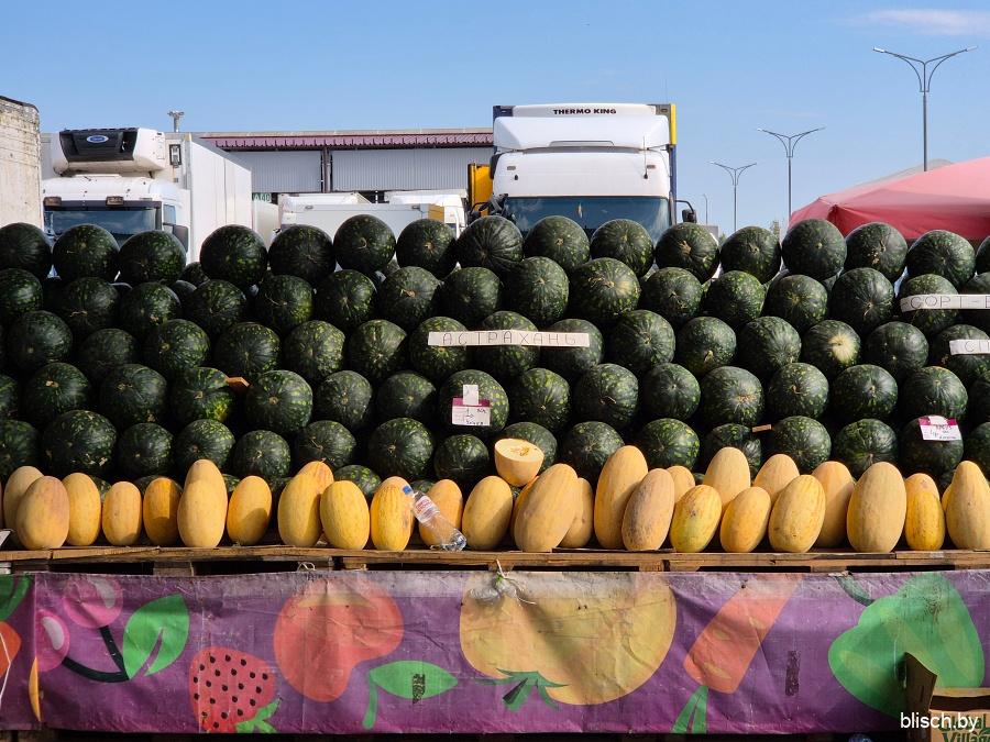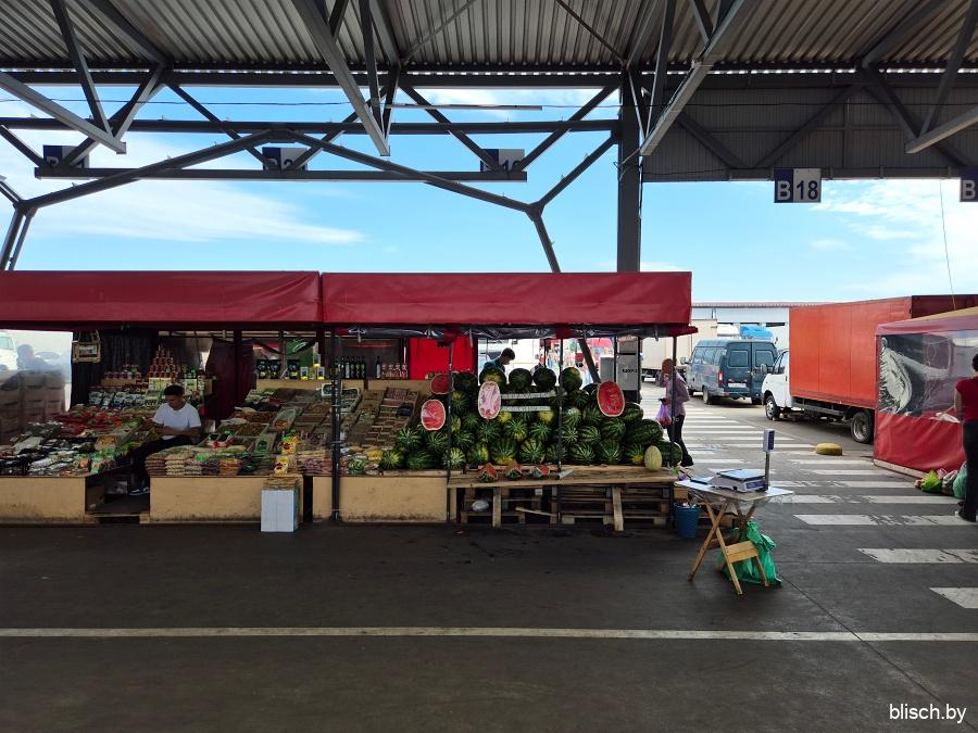 Конечно, основным товаром здесь выступает плодовощная продукция. Ей торгуют с грузовиков и под навесами — торгуют мелким оптом и в розницу, причем форматы разделены физически. В моменте вы либо находитесь там, где опт (или «ящиками») или там, где на развес.