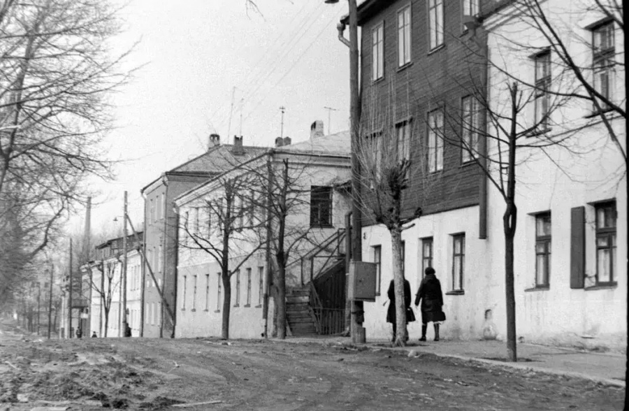 У этой улочки когда-то была нечетная сторона. Дольше всех на ней выстояла общественная баня №2 (она слева), а четная сторона была полностью блокированной: