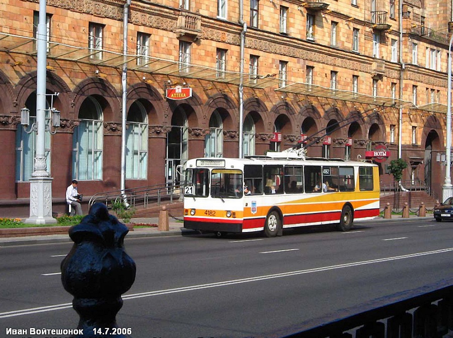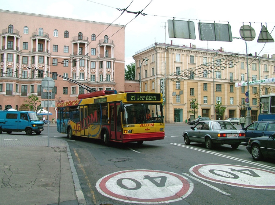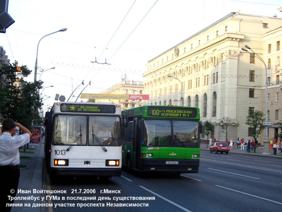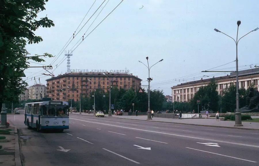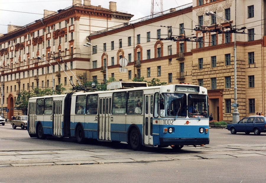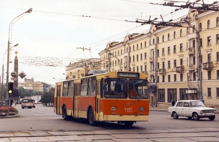 Я выходил из дверей журфака на Московской, 15 после занятий и по обыкновению ехал в центр на Феликс. Выбор был только из троллейбусных маршрутов — второго и сорок третьего. Один начинал свой путь от старого аэропорта, другой с Серова, и до цирка они дублировали друг друга. У цирка 43-й поворачивал на Купалы, двойка же следовала дальше. Троллейбусная сеть на проспекте Скорины (теперь Независимости) была демонтирована в августе 2002-го, к тому времени я даже еще не закончил университет, спустя четыре года «рогатые» ушли со второй по значимости столичной улицы — проспекта Машерова (теперь Победителей). Наверное, это было правильно с эстетической точки зрения, но все-таки частичка города осталась там, в 2002-м. Смотрим фото.