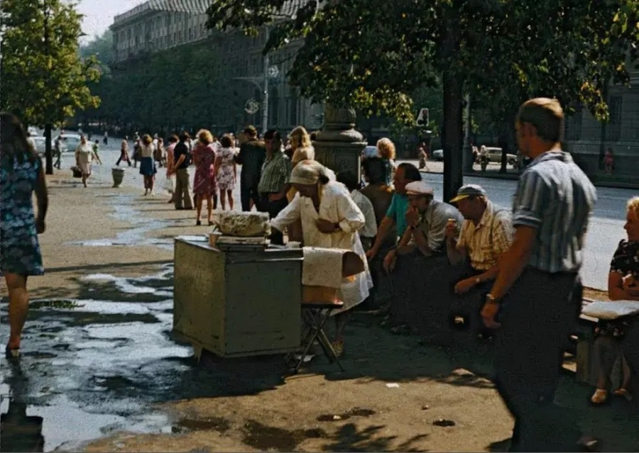 Не мог не вставить это фото, потому что на нем виден РАФ маршрутного такси. Когда-то хотел написать о системе перевозок микроавтобусами в советском Минске, но просто не нашел никакой фотофактуры, а тут случайно всплыл такой подарок…
