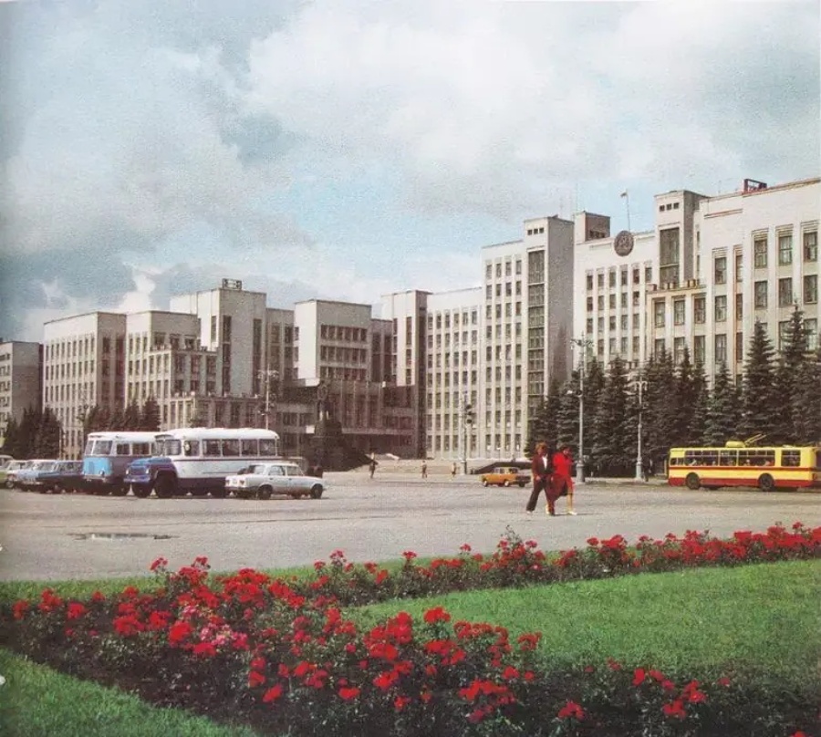 Общественный транспорт ходил по площади по другой схеме. Поток из центра выезжал ближе к Дому правительства, делая круг по периметру: